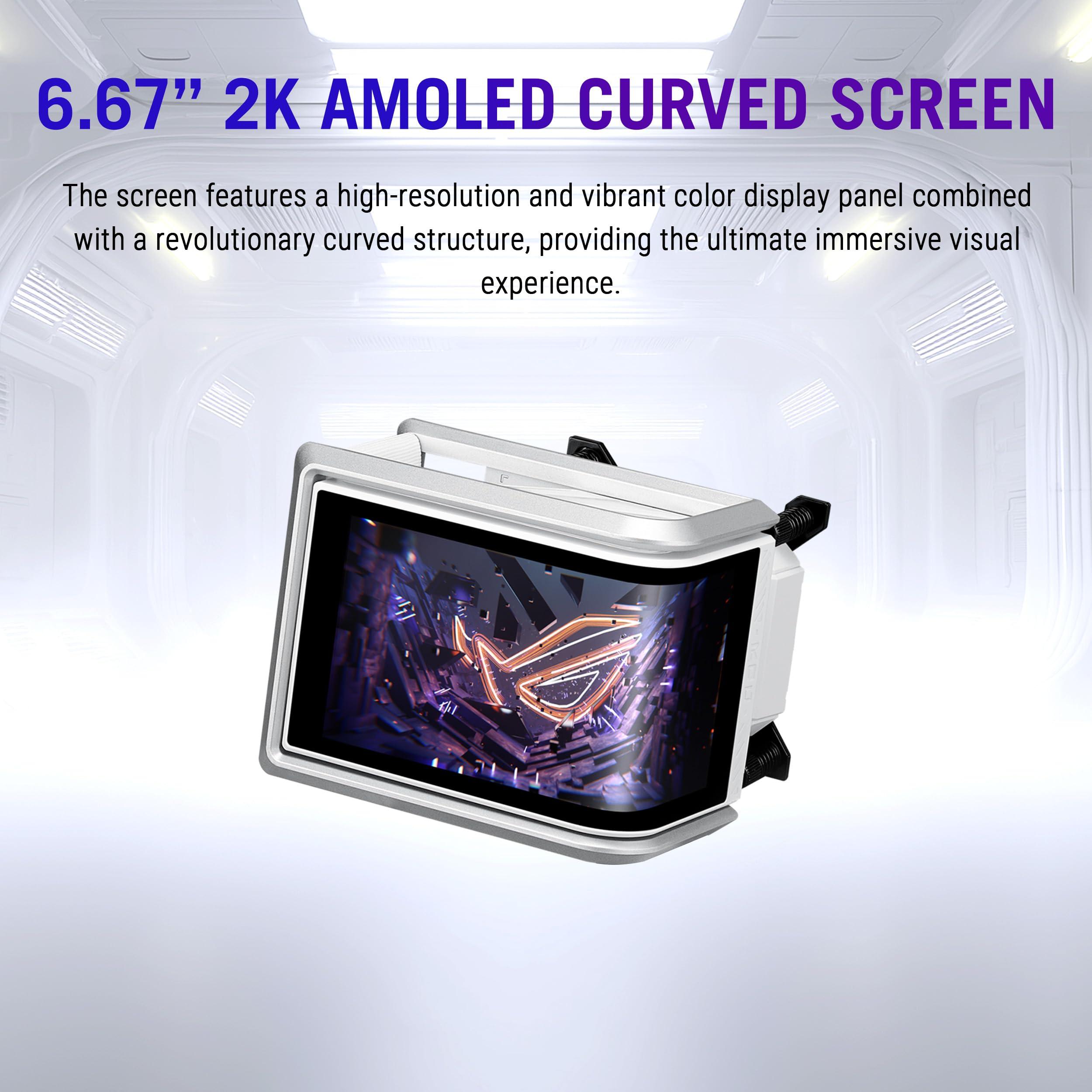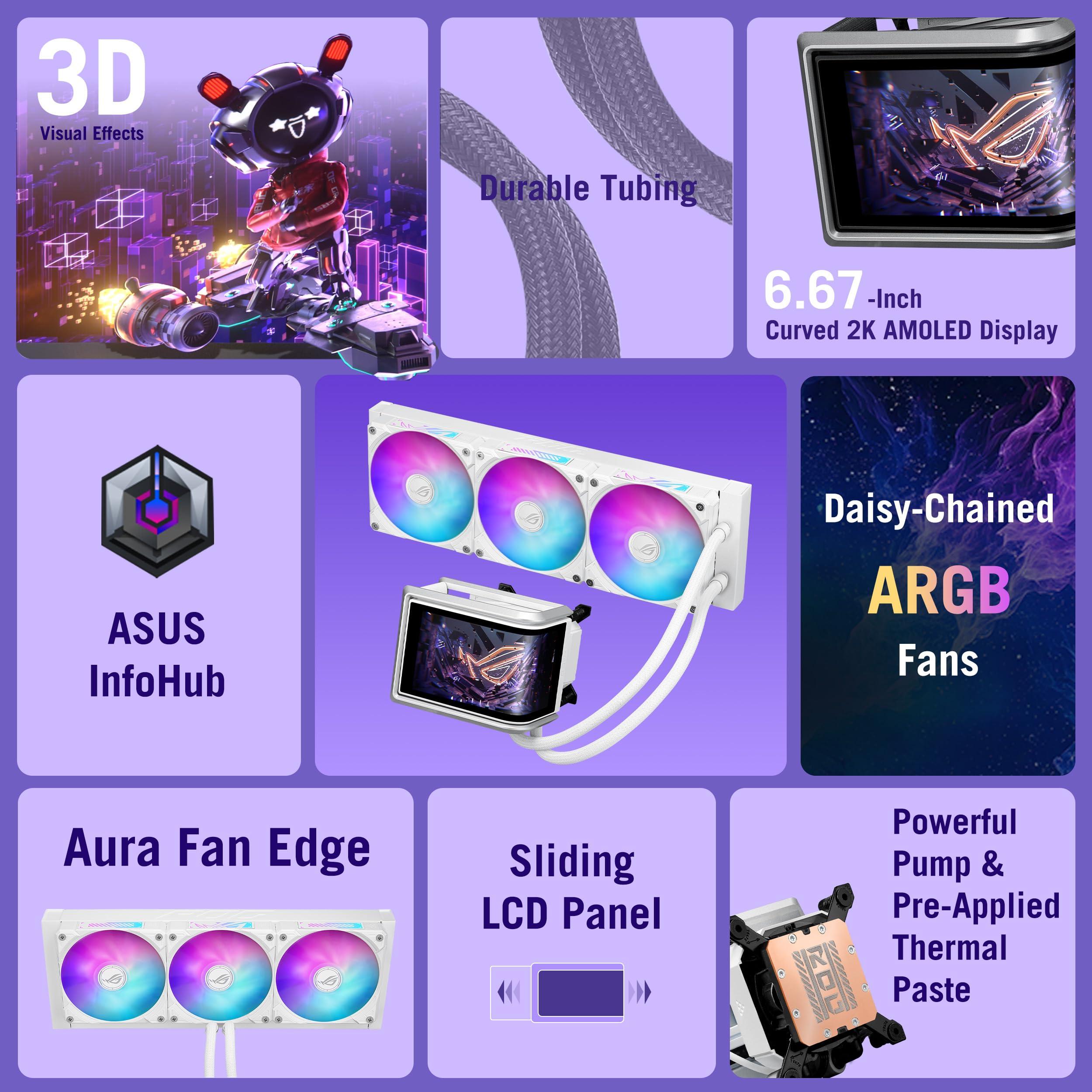 ASUS ROG RYUO IV 360 ARGB WHT, Dissipatore a Liquido con Schermo Curvo 2K AMOLED da 6,67" per Effetti 3D, Tubi da 400mm, Ventole ARGB, Compatibile con Intel LGA 1851 e 1700 e AMD AM5 e AM4, Bianco