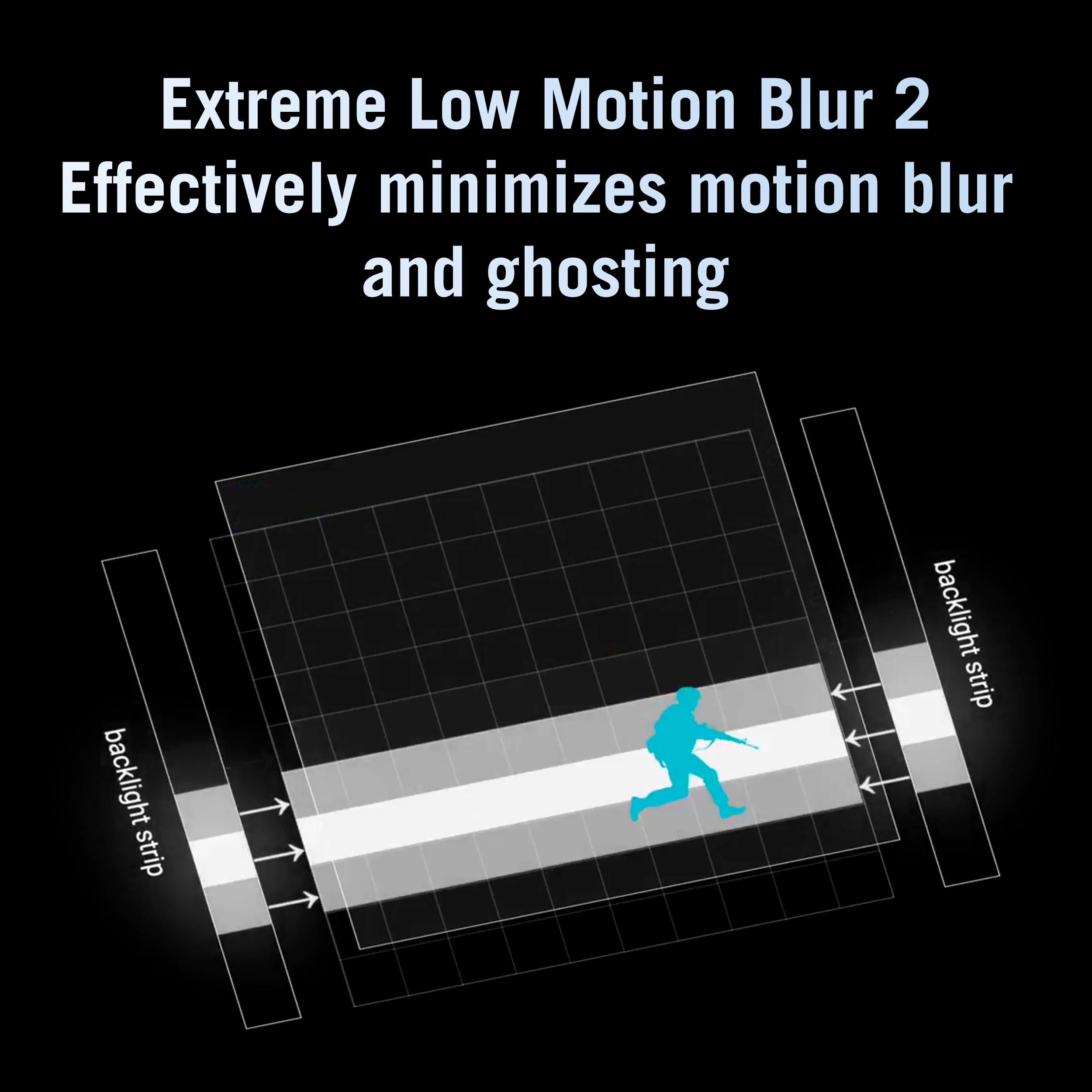 - La tecnologia ASUS Extreme Low Motion Blur 2 consente, grazie alle sue cinque diverse impostazioni di livello disponibili, di ridurre la sfocatura da movimento e l'effetto ghosting, ottenendo così una grafica di gioco nitida anche con frame rate elevati