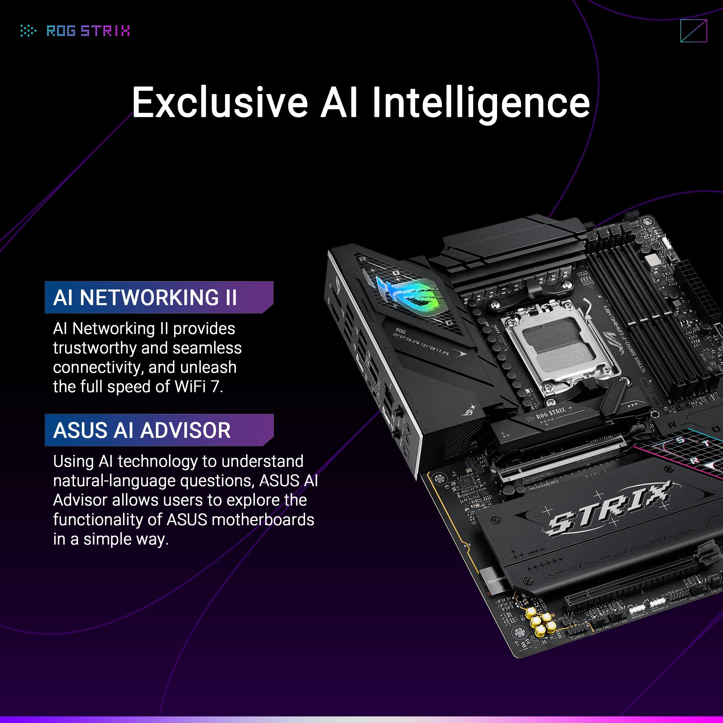 ASUS ROG Strix B850-F Gaming WiFi, Scheda Madre AMD ATX, 16+2+2 Fasi di Alimentazione, Slot DDR5, PCIe 5.0 con Slot Q-Release, 4 slot M.2, WiFi 7 con WiFi Q-Antenna, AI Advisor, AI Networking II