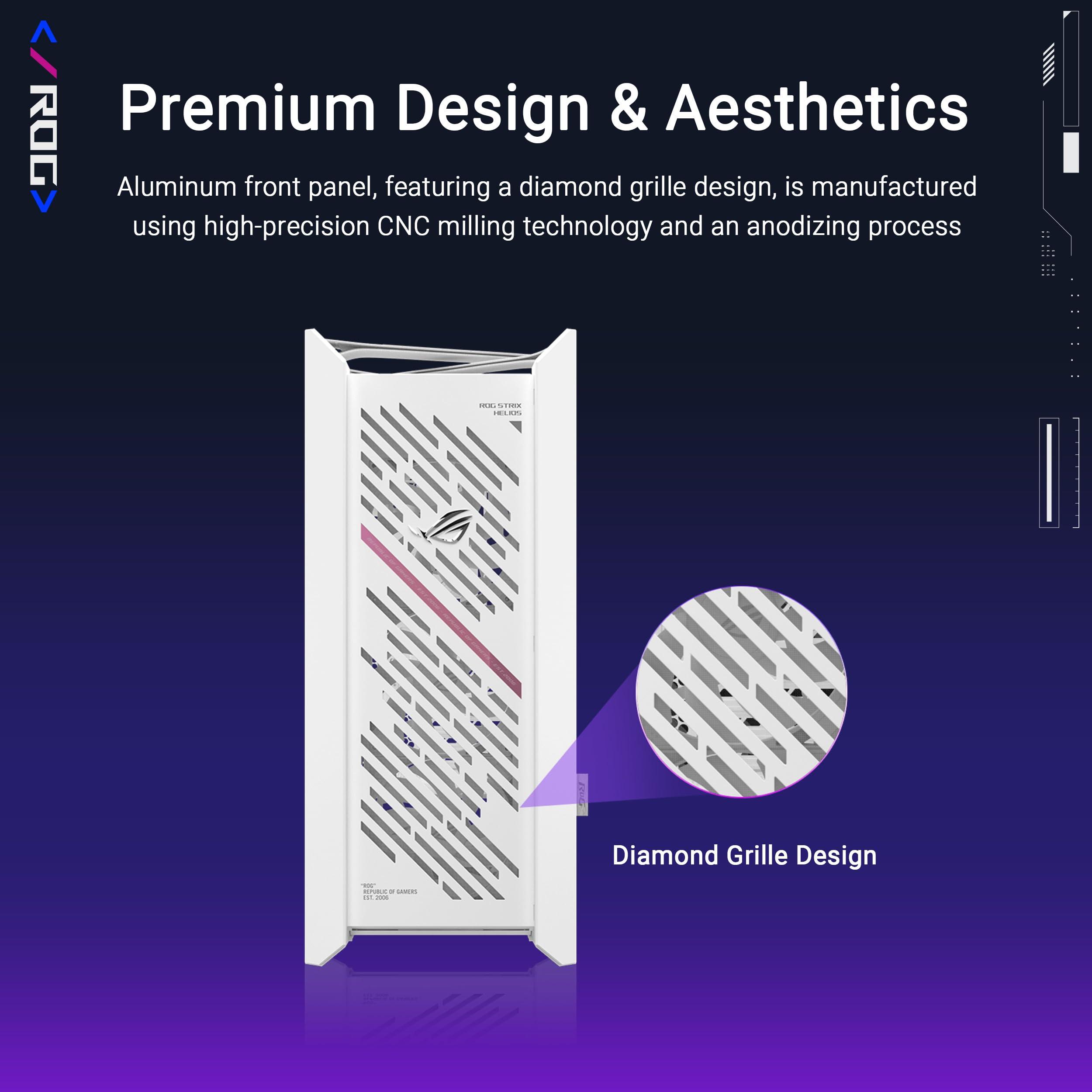 ASUS ROG Strix Helios II GX601S WHITE, Case Gaming EATX in Alluminio, Vetro Temperato ai Lati, Design a Griglia di Diamanti e Filtro 3D, 4 Ventole ARGB Preinstallate, Cinghie per il Trasporto, Bianco