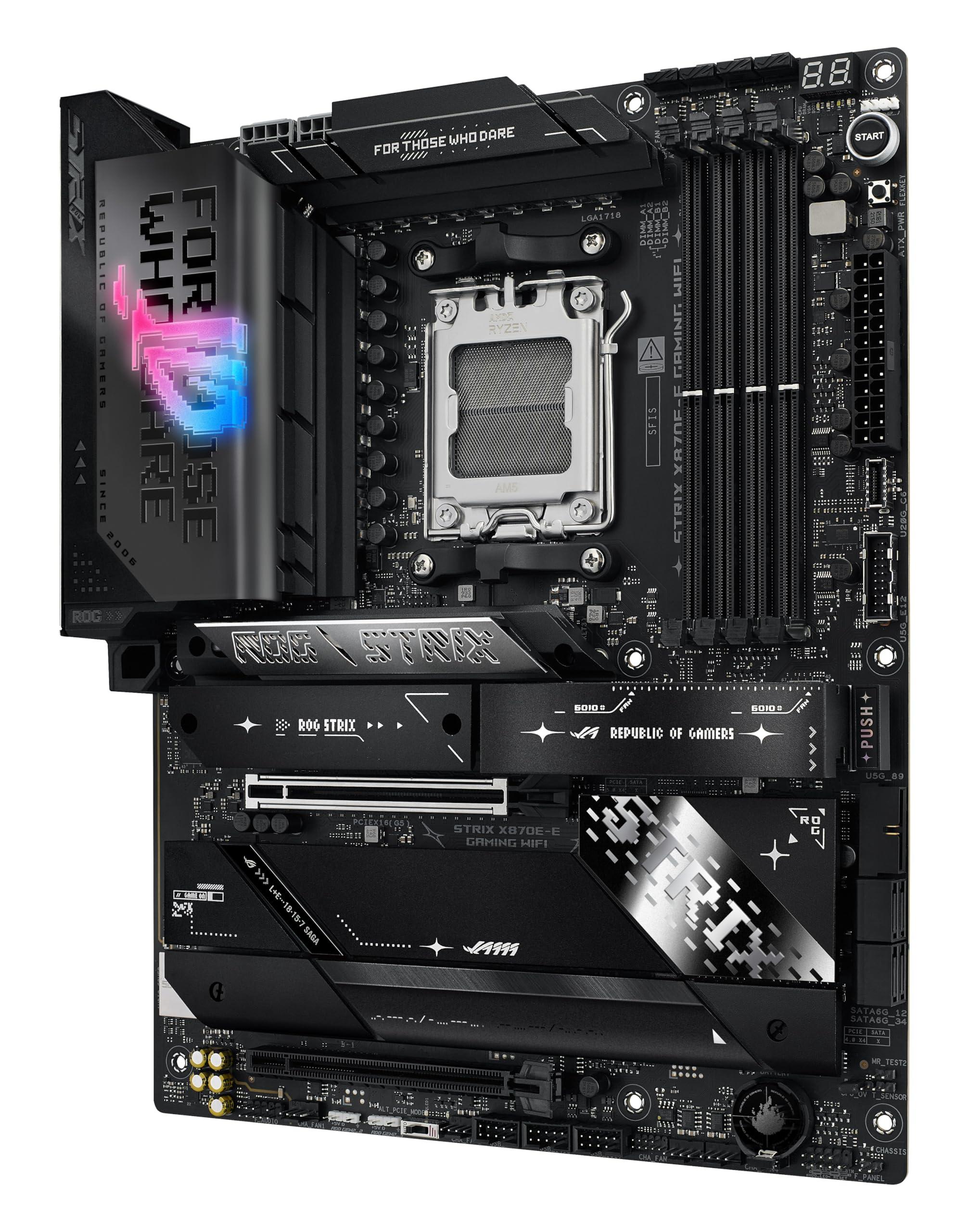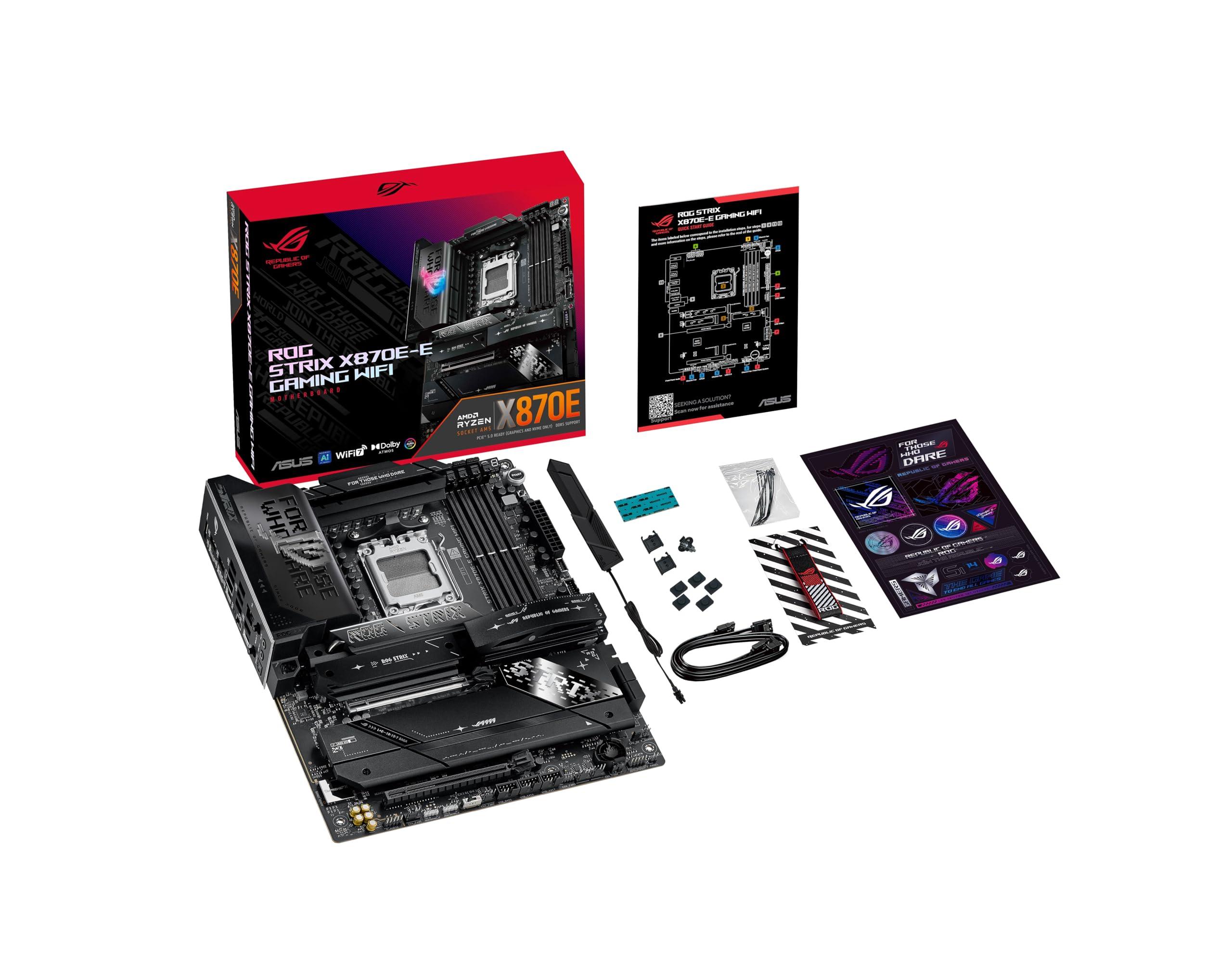 ASUS ROG Strix X870E-E Gaming WiFi Scheda madre AMD, 18+2+2 stadi di alimentazione, slot DDR5, cinque slot M.2, PCIe 5.0, GPU di nuova generazione, WiFi 7, USB 20G con PD 3.0 fino a 30W, Aura Sync