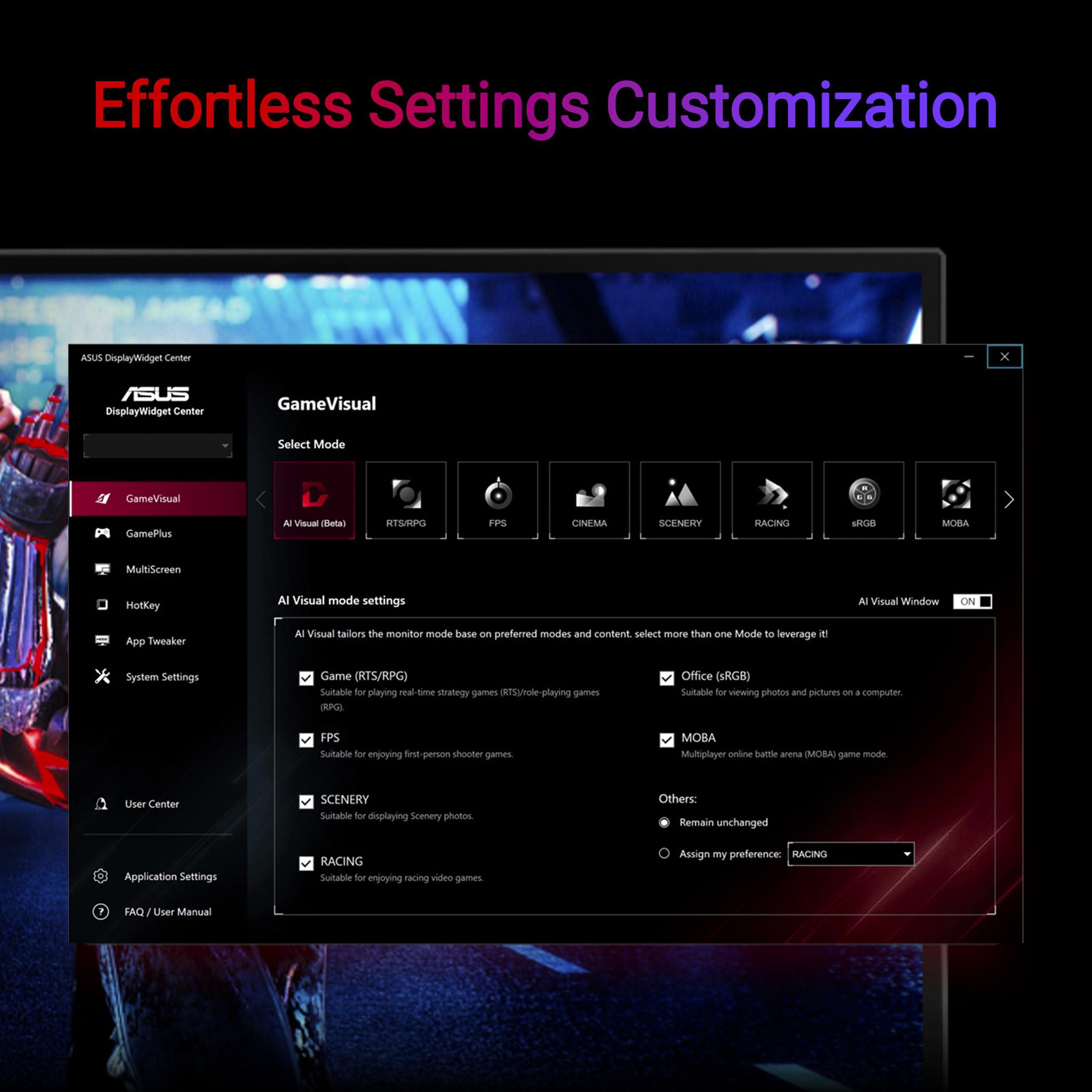 - Tempo di risposta di 1ms GTG, per un gameplay sempre fluido; allo stesso tempo, la tecnologia ASUS Extreme Low Motion Blur (ELMB) riduce ulteriormente il ghosting e la sfocatura del movimento per una rappresentazione di gioco nitida con frame rate elevati