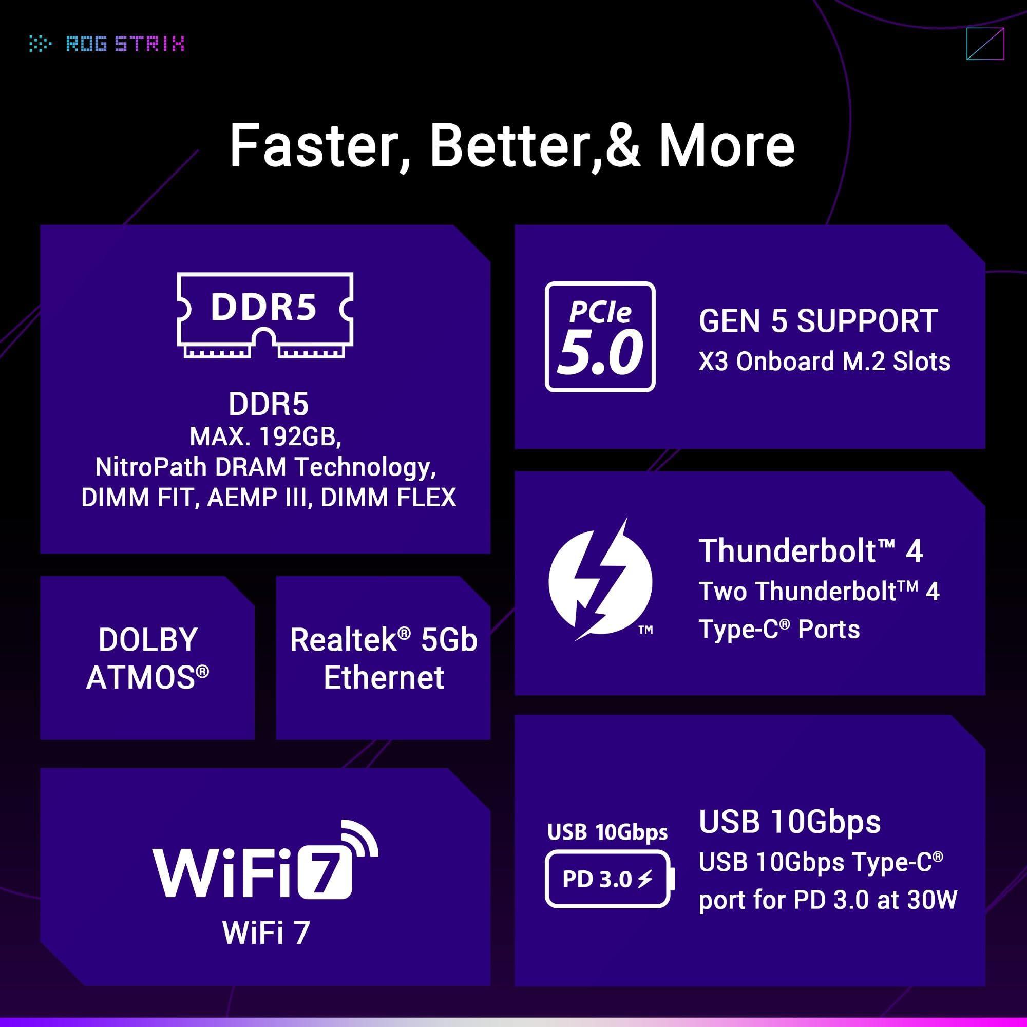- Rete ad alte prestazioni: Wi-Fi 7 (802.11be) on-board con ASUS WiFi Q-Antenna e Realtek 5 Gb Ethernet