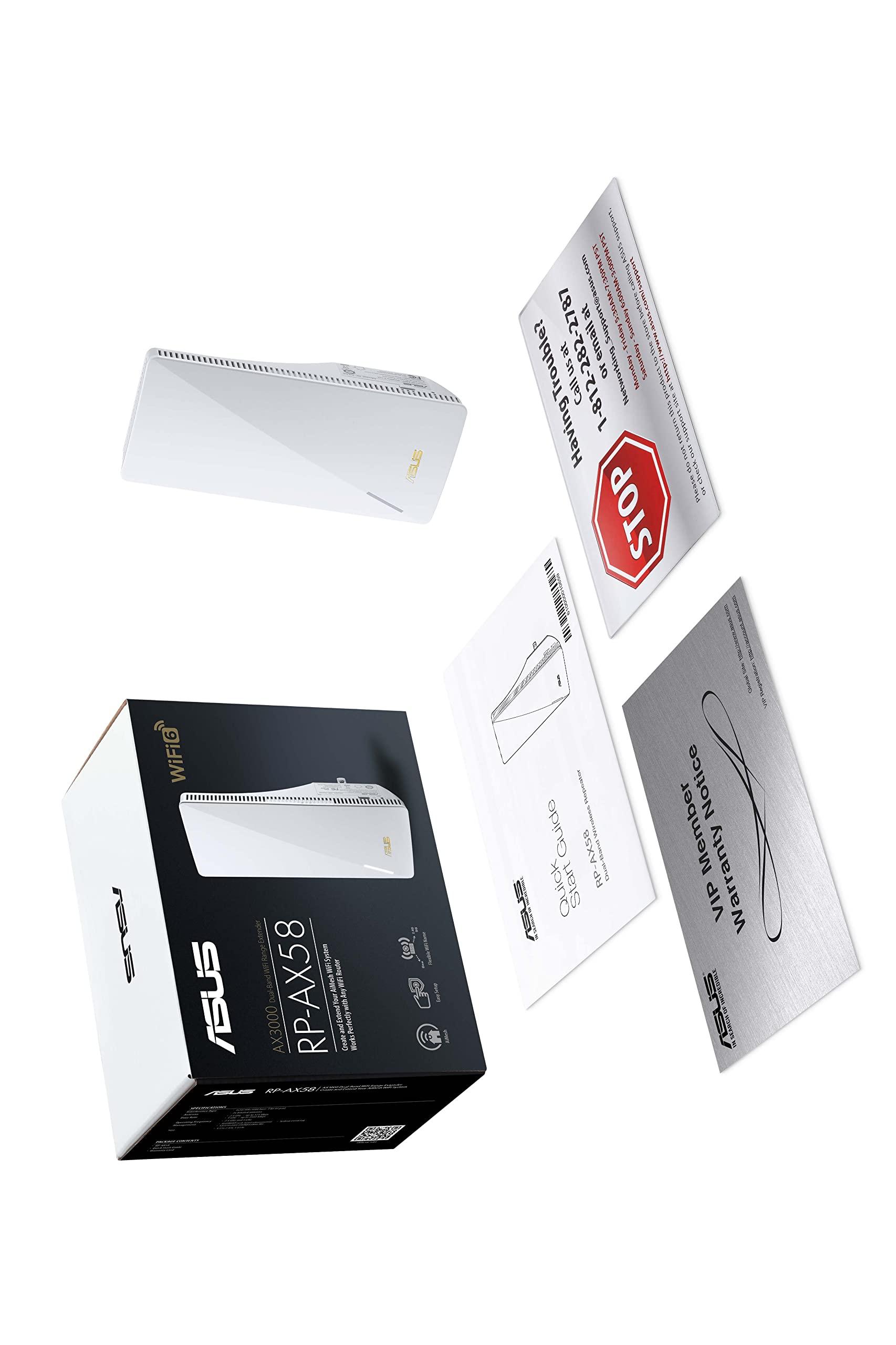ASUS RP AX58 AX3000 Range Extender, Dual Band WiFi 6, 802.11ax, 2400 Mbps, AiMesh, Facile Configurazione e Gestione tramite App Mobile, Elevata Compatibilità, Bianco