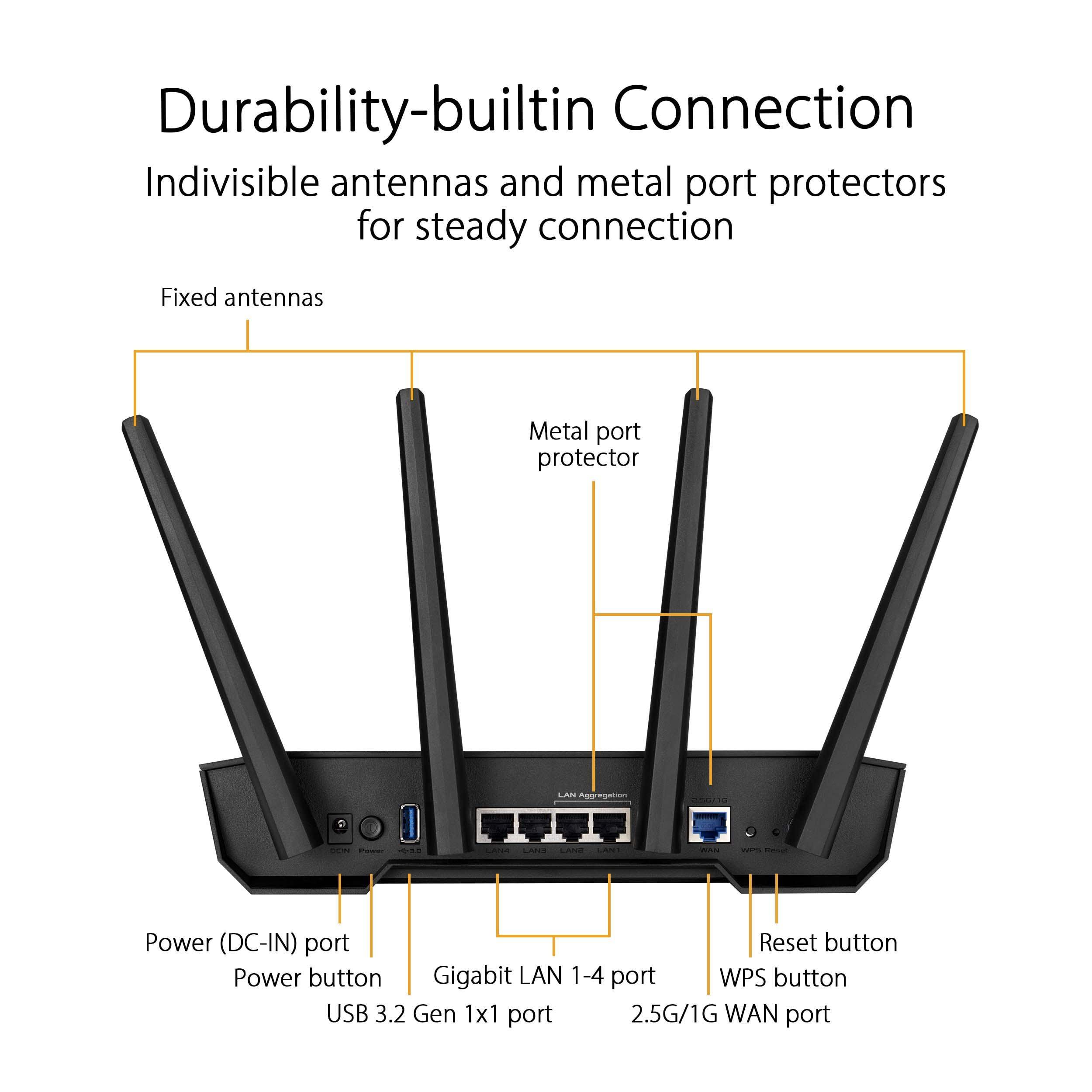 ASUS TUF Gaming AX3000 V2 - Router Gaming Dual Band WiFi 6 802.11ax, Per Modem Operatore e ONT, Porta 2.5Gbps, Modalità Mobile Game, Supporta Mesh WiFi, Gear Accelerator, Adaptive QoS, Nero