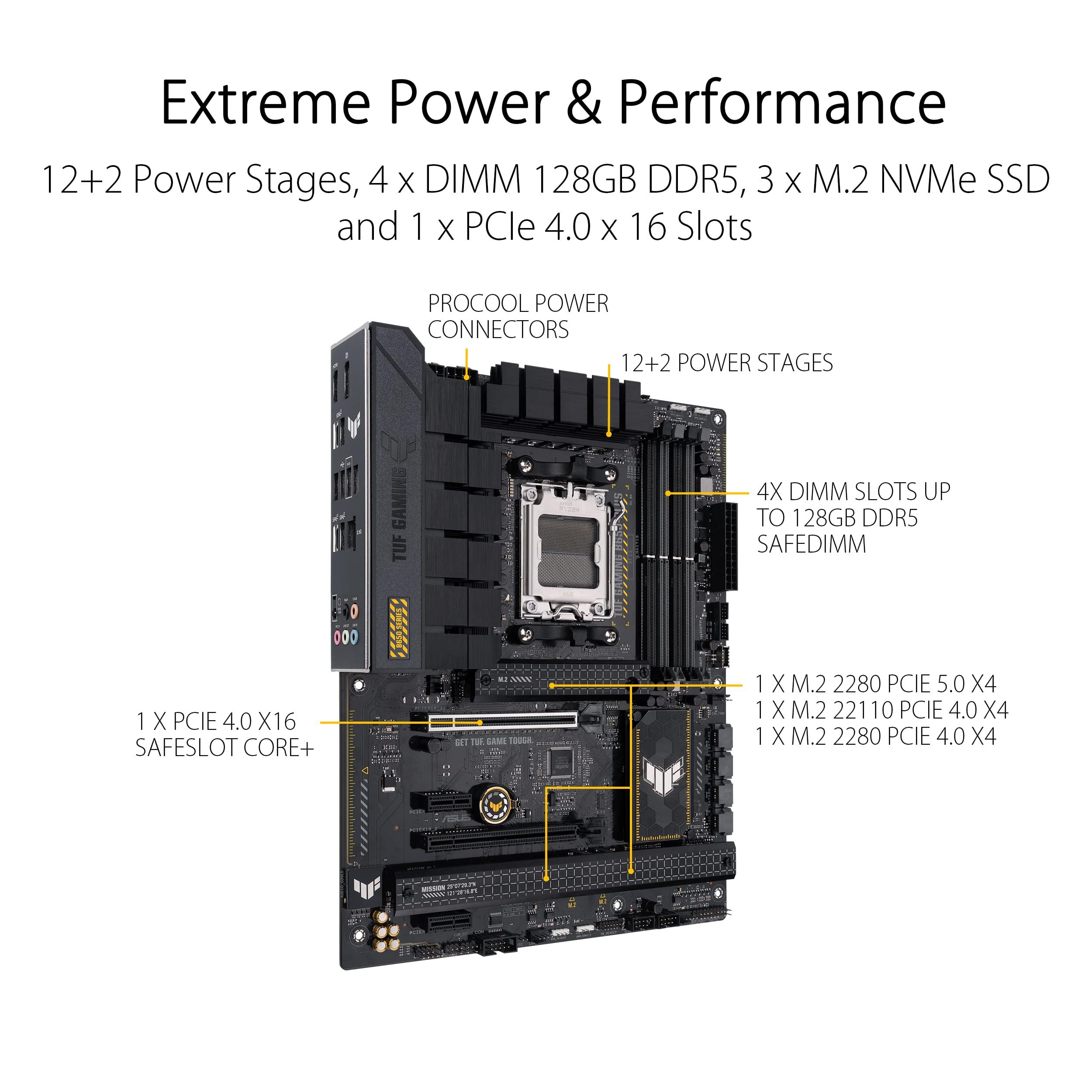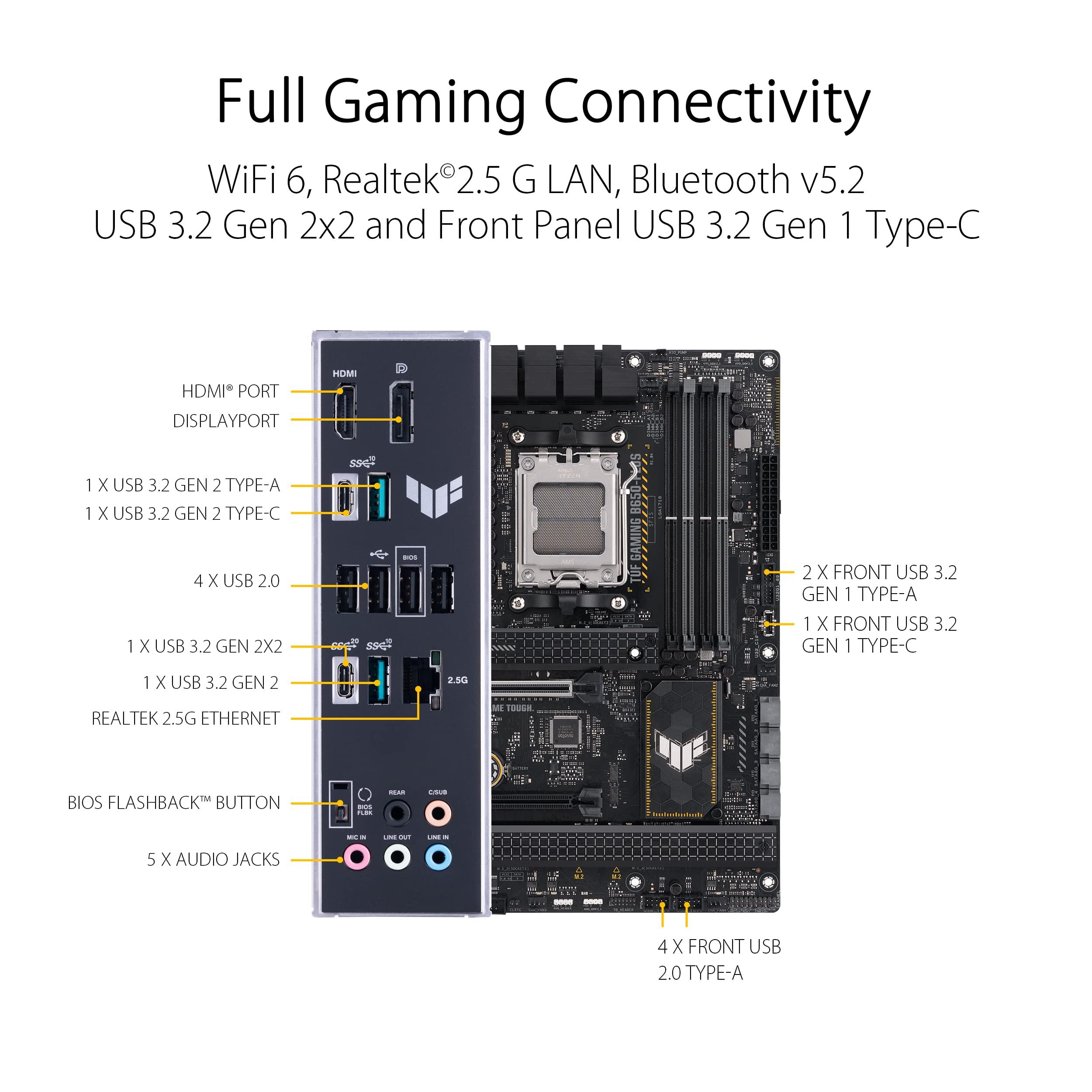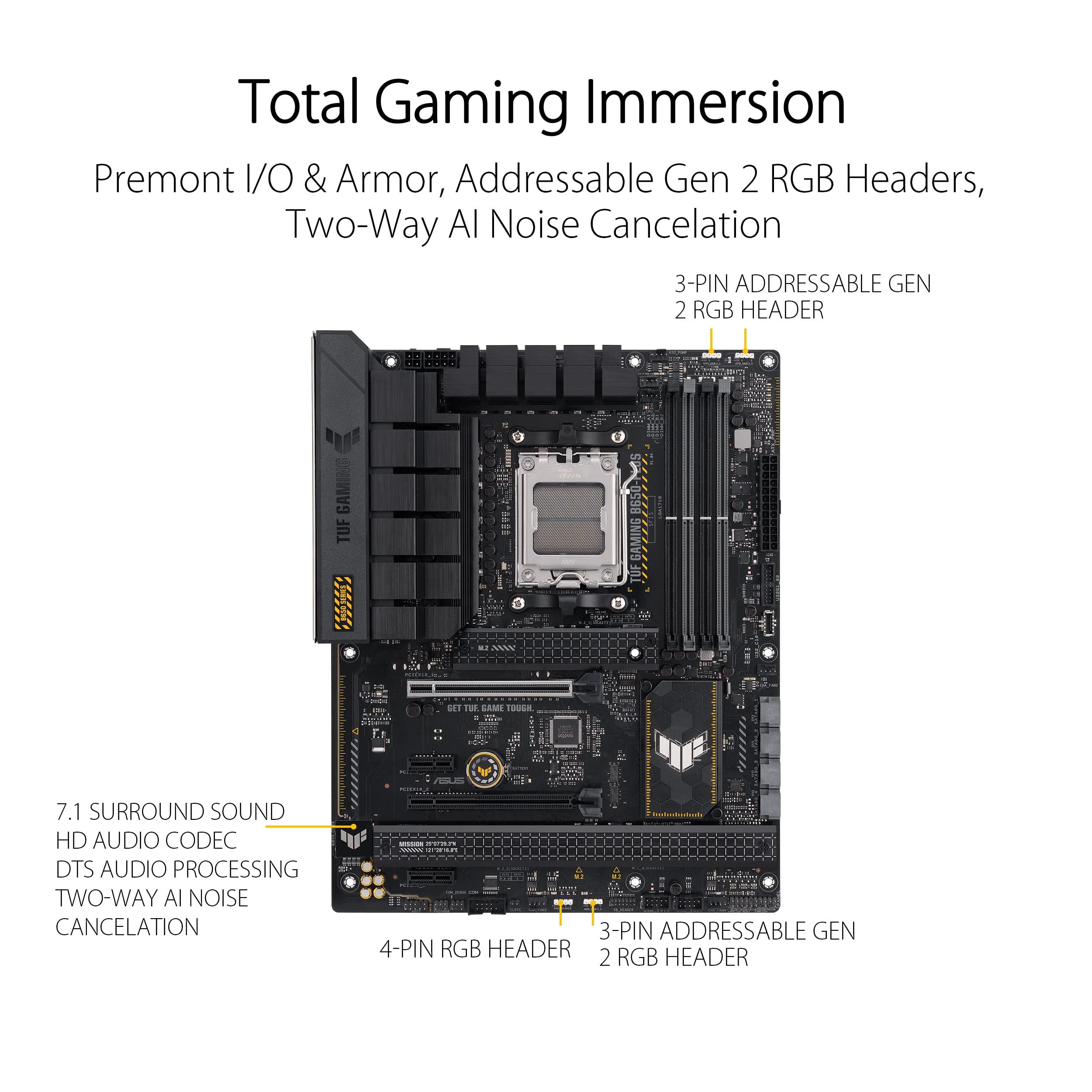 ASUS TUF GAMING B650-PLUS Scheda Madre Gaming ATX, AM5, Ryzen 9000/8000/7000, AMD B650, DDR5, 4xPCI 4.0, 2.5Gb Lan, 3xM.2, 4xSATA 6GB/s, Aura Sync RGB, Nero