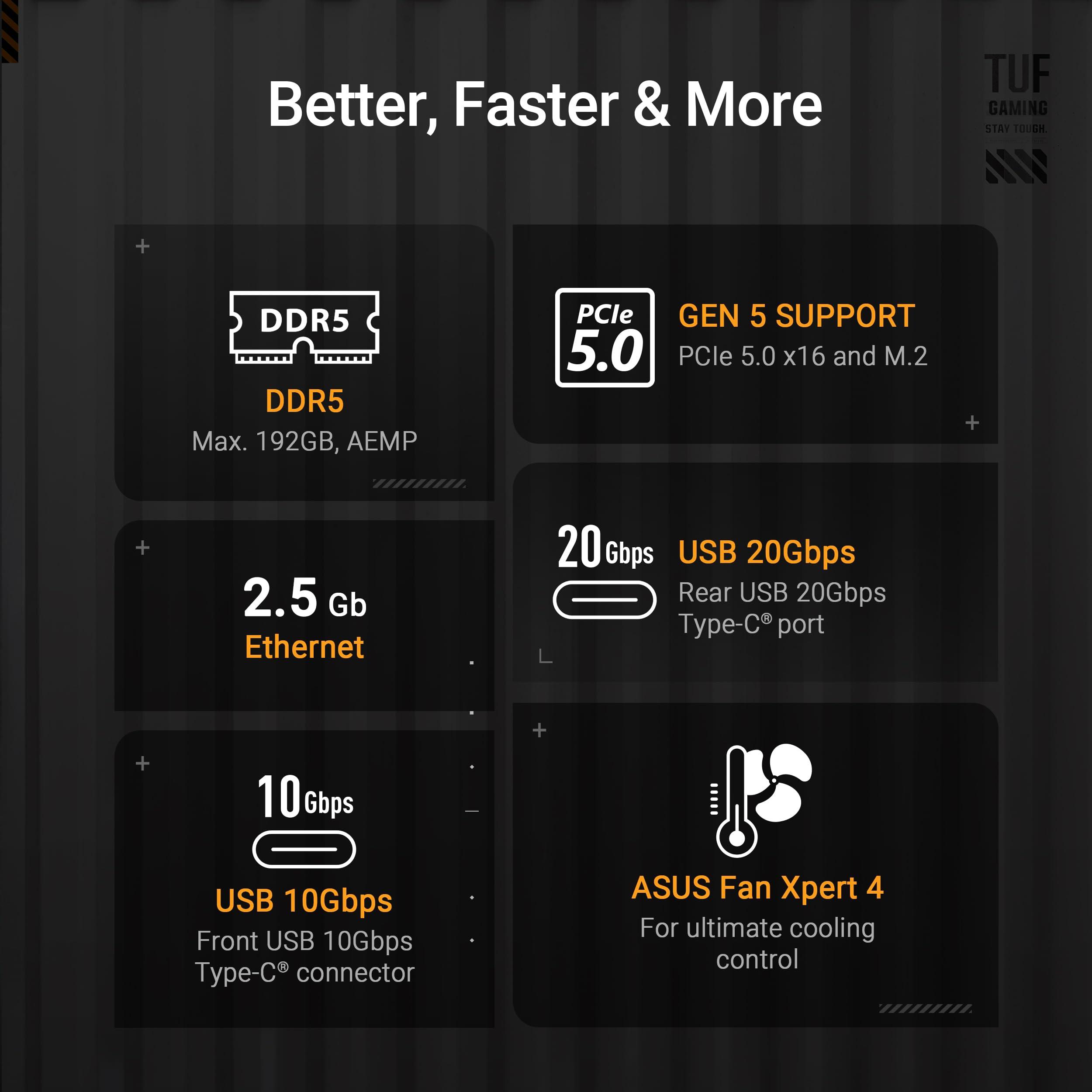 ASUS TUF Gaming B850M-Plus, Scheda Madre AMD mATX, 14+2+1 Fasi di Alimentazione, Slot DDR5, PCIe 5.0 Ready, 3 slot M.2, Ethernet Realtek 2,5 GB, USB-C da 20 Gbps, BIOS Flashback e Aura Sync