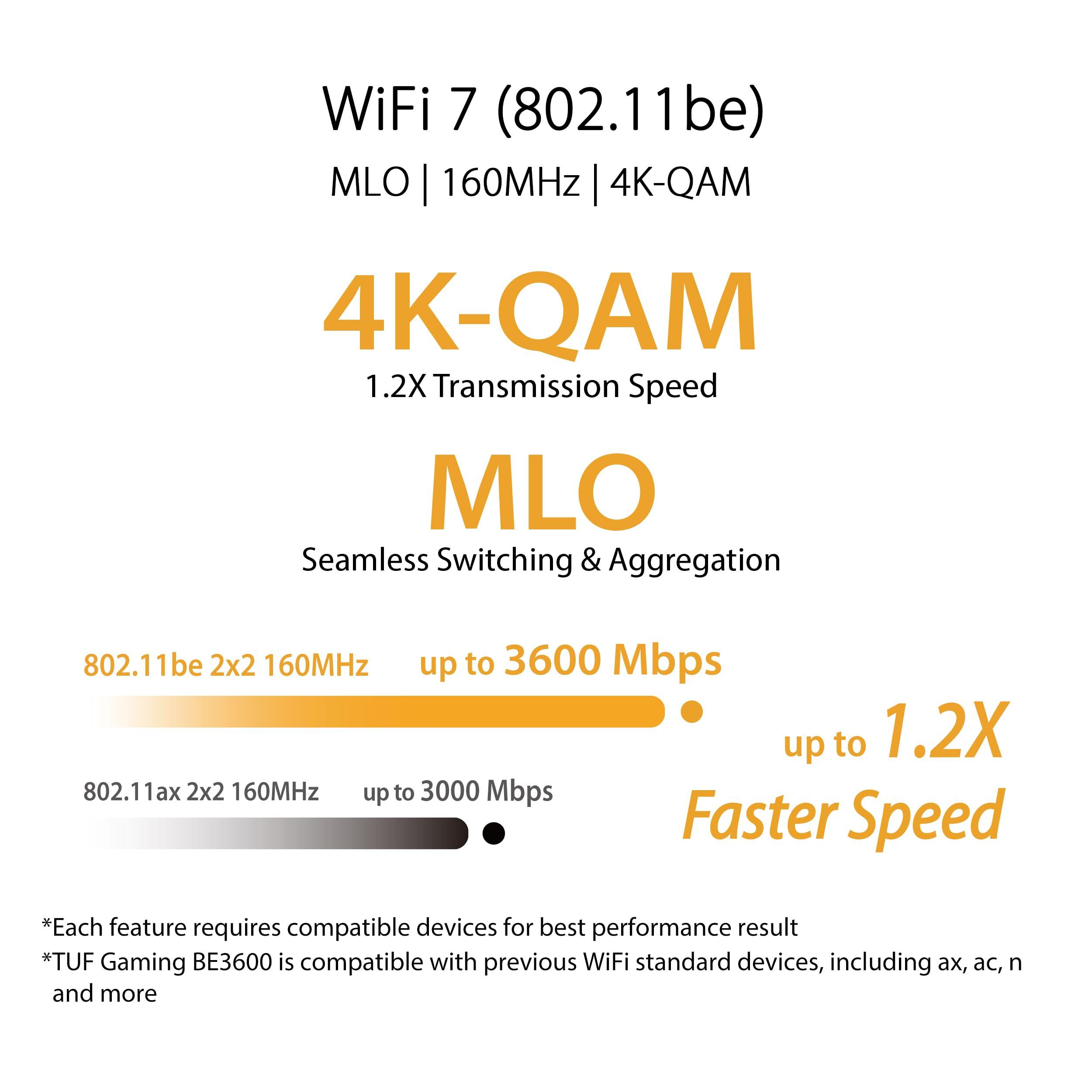 - Modulazione 4K-QAM: la nuovissima 4096-QAM offre una velocità di trasmissione 1,2 volte superiore rispetto alla generazione precedente