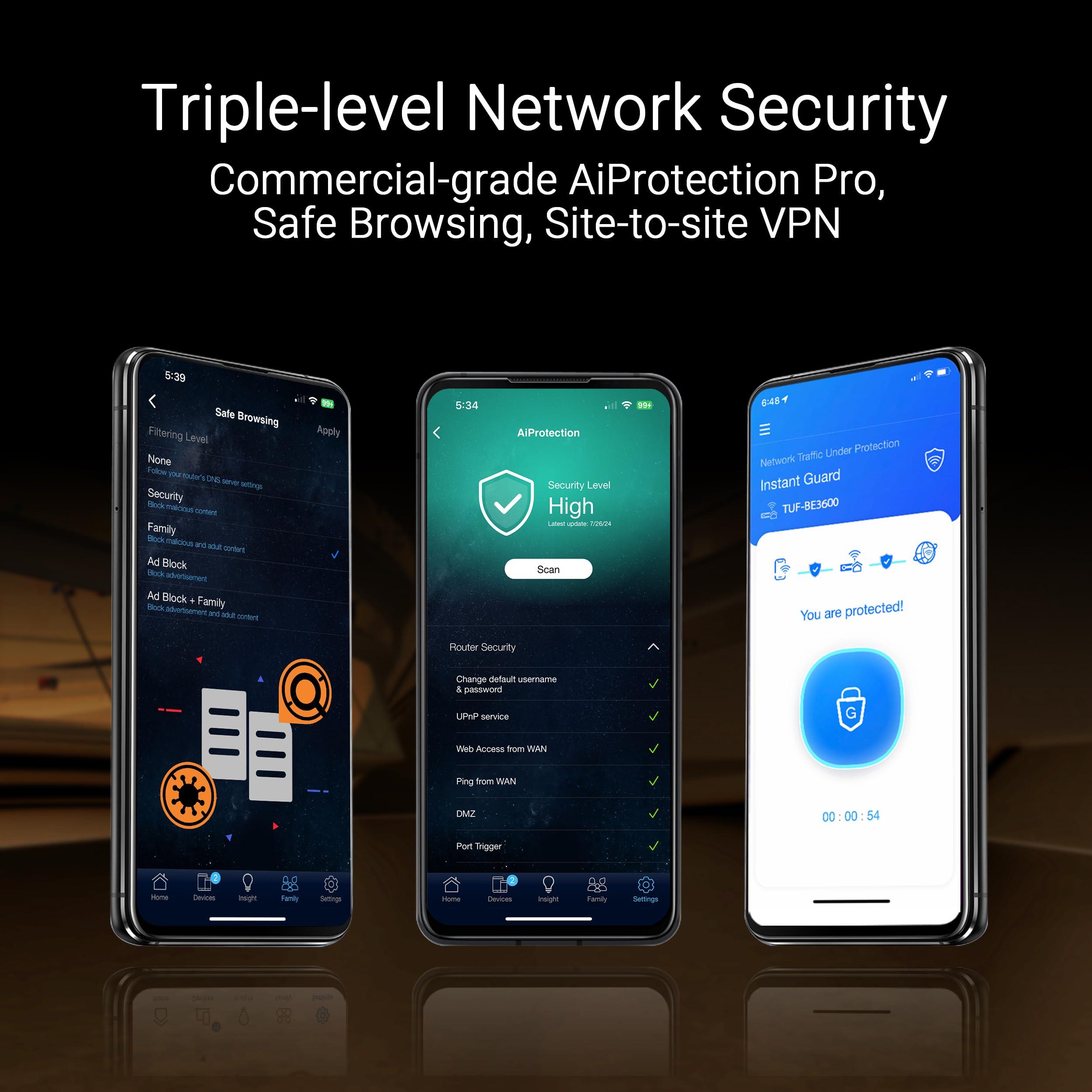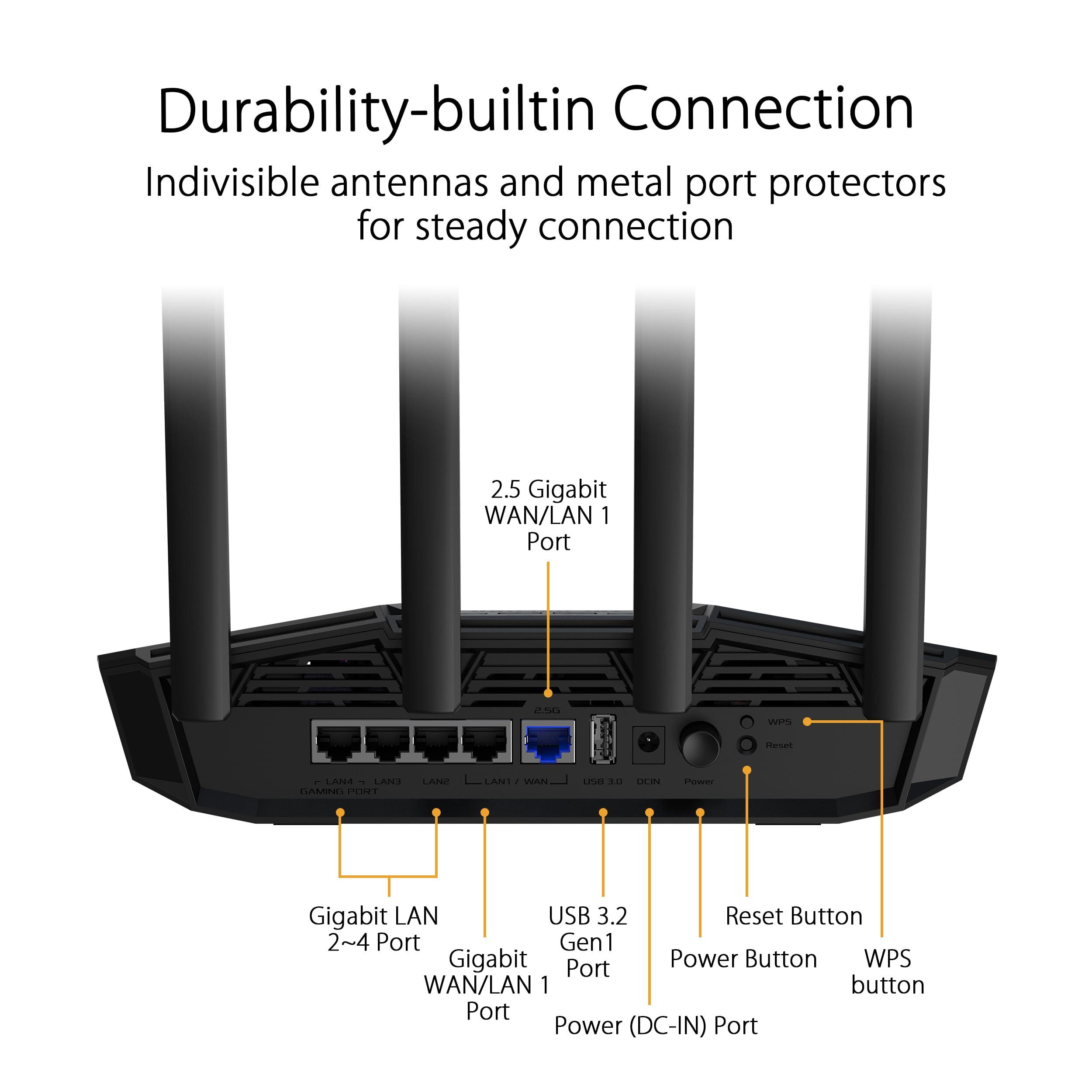 ASUS TUF Gaming BE3600, Router Dual Band WiFi 7 802.11be, Per Modem Operatore e ONT, Ethernet 2.5Gbps, Mobile Game, Mesh WiFi, Gear Accelerator, Adaptive QoS, Port Forwarding, Mobile Tethering