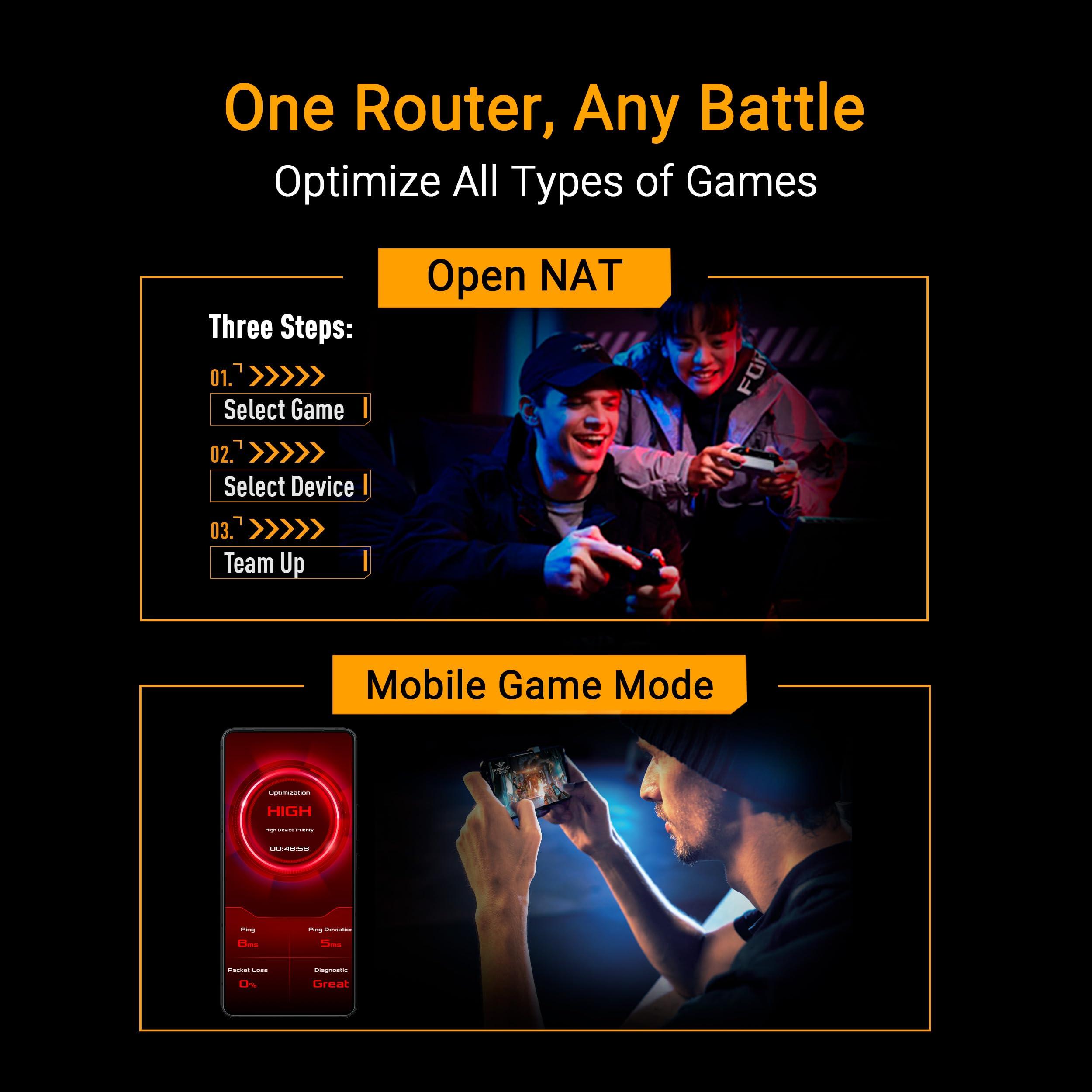 - Il router è provvisto di quattro porte 2.5G, tra cui tre porte LAN 2.5G e una porta WAN 2.5G; è presente anche una porta pensata per il gaming, per dare priorità ai giochi con un solo tocco e OpenNAT per accelerare il gameplay