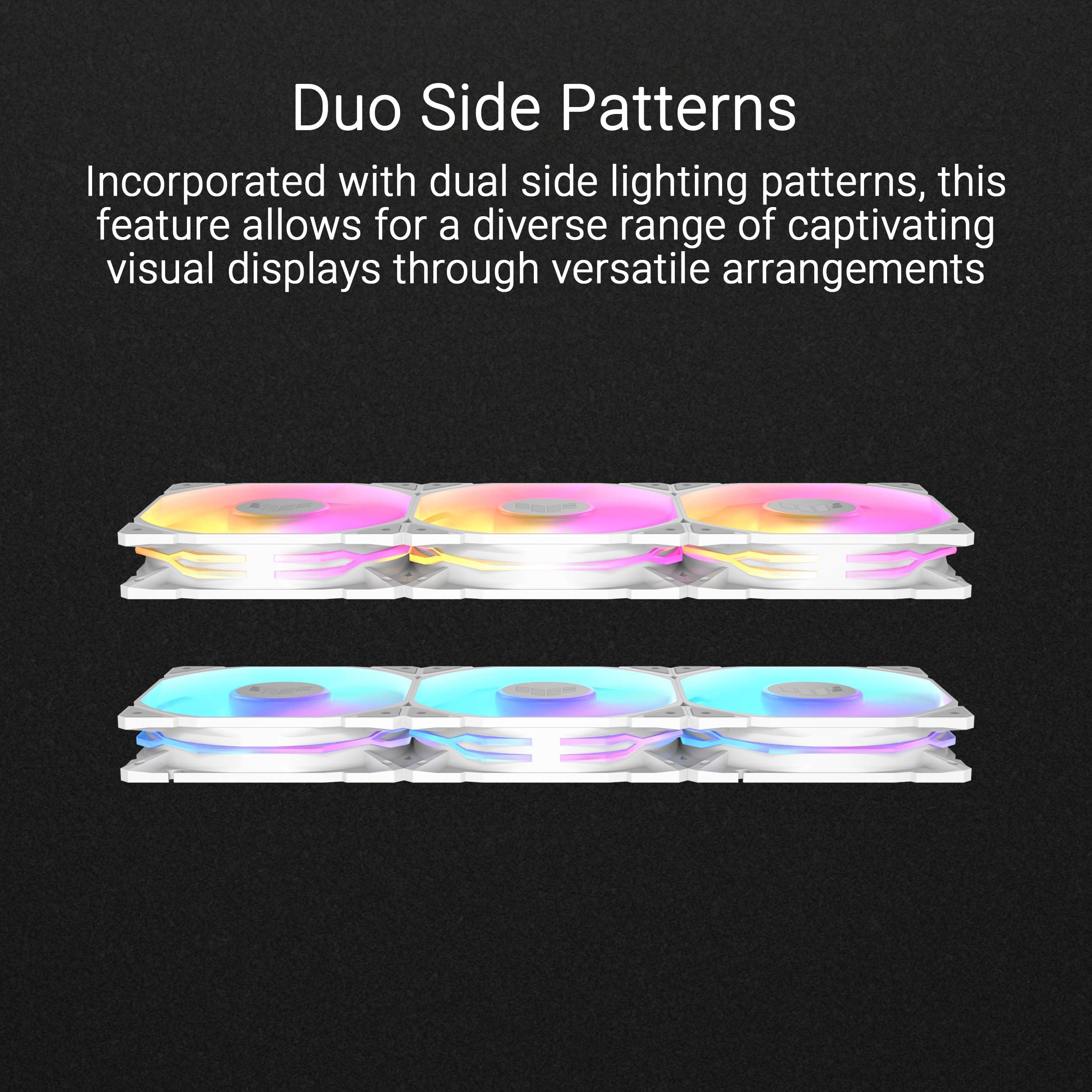 ASUS TUF GAMING TR120 FAN ARGB REVERSE WHITE 3 IN 1 Ventole Case a Pale Invertite Spessore 28 mm, Pressione Statica 3,3 mm H2O e Flusso d'aria Elevato, Design Doppio Strato 16 LED RGB, 3 pezzi, Bianco