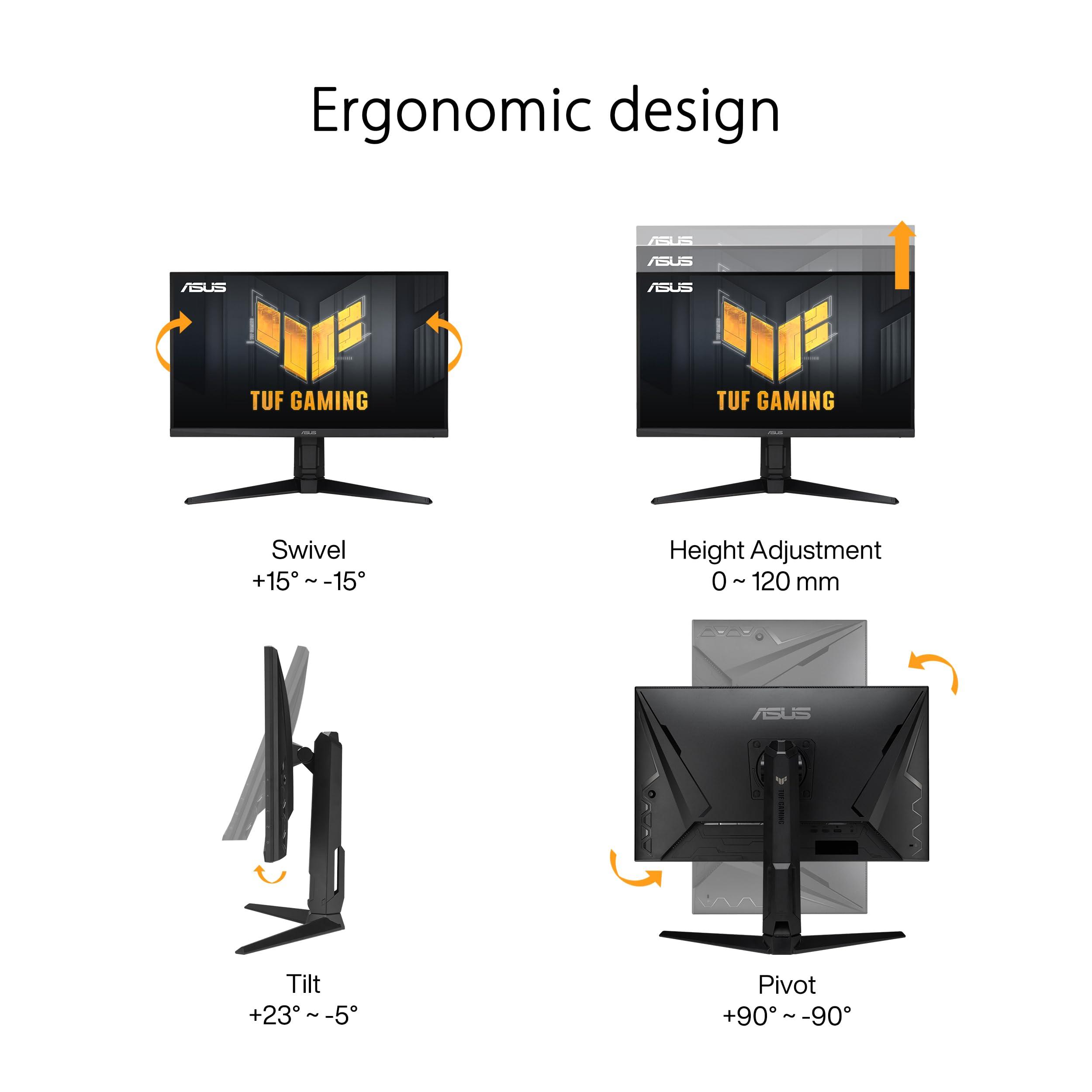 ASUS TUF Gaming VG279QL3A Monitor Gaming da 27” pollici, Full HD (1920x1080), 180 Hz, Fast IPS, ELMB, Tempo di Risposta 1 ms, FreeSync Premium, Variable Overdrive, 125% sRGB, Altezza Regolabile, Nero