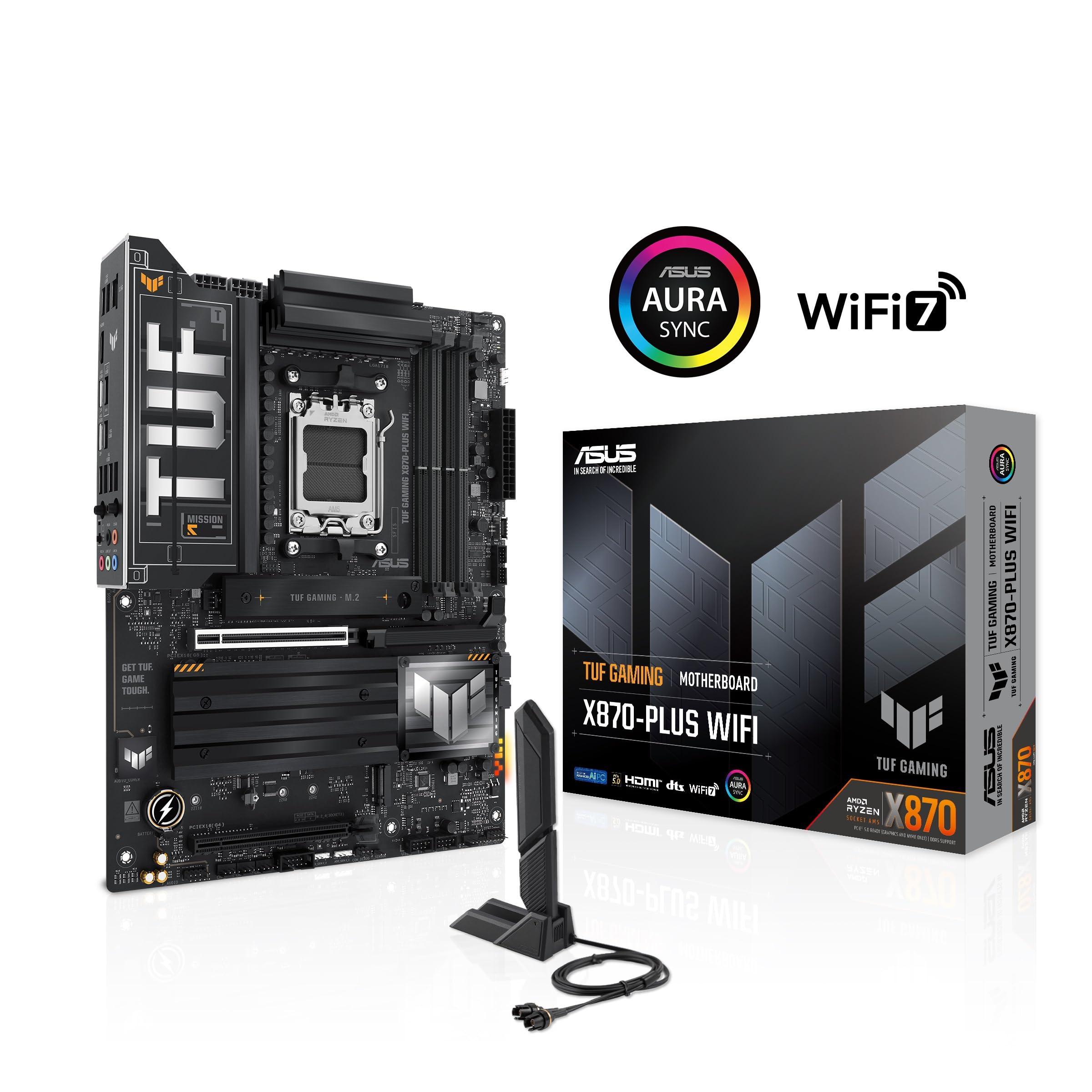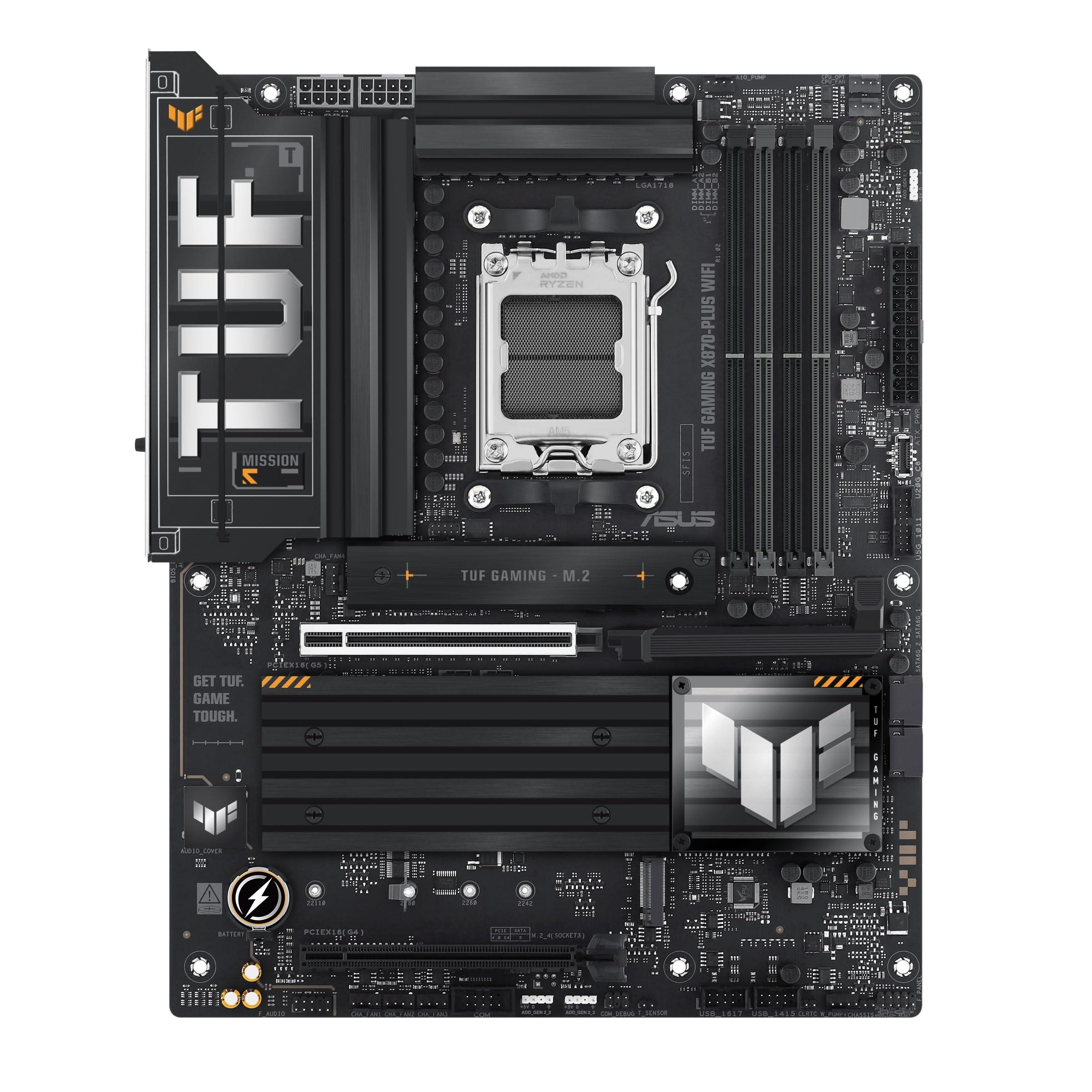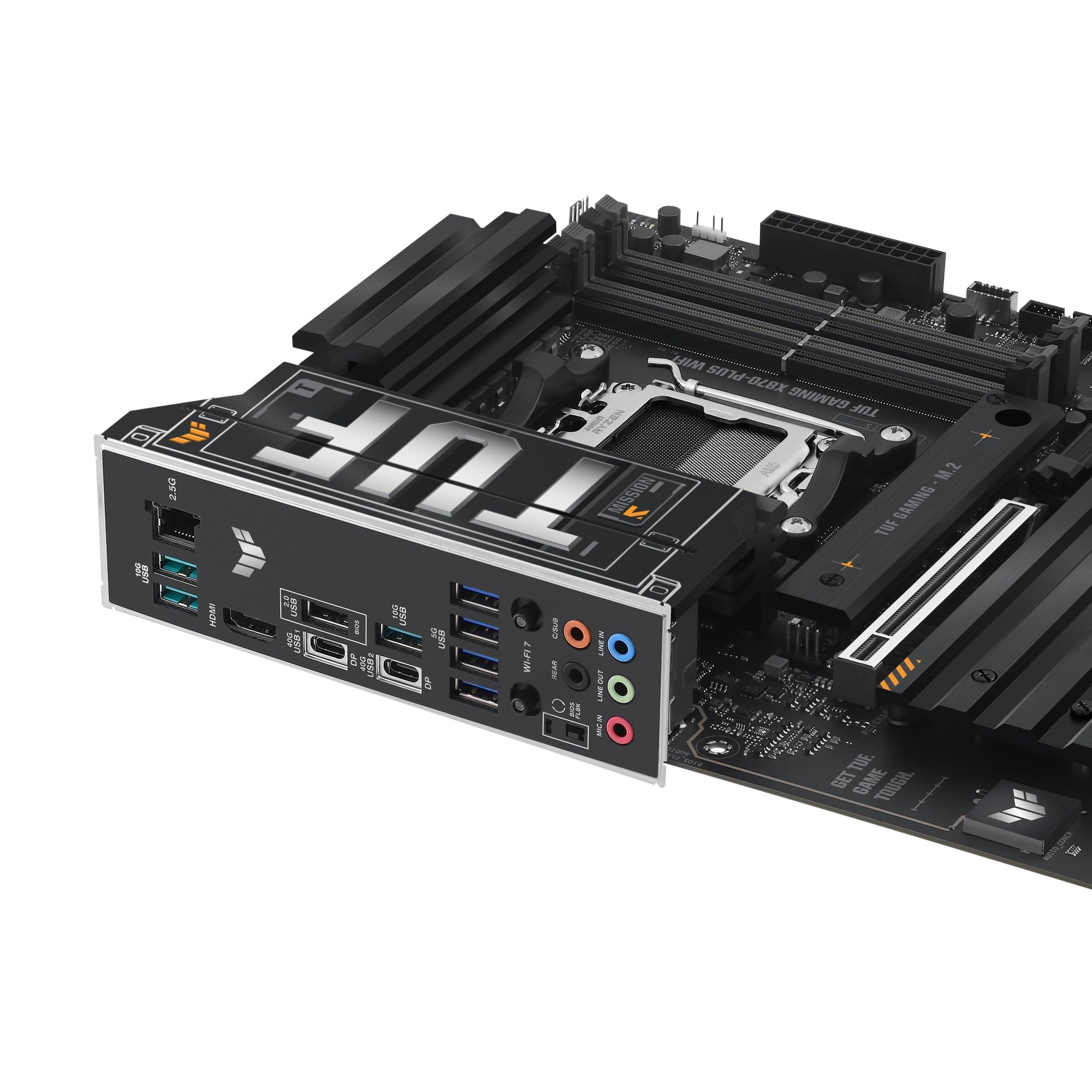 ASUS TUF GAMING X870-PLUS Scheda madre WIFI ATX, 16+2+1(80A) stadi di alimentazione, DDR5, PCIe 5.0, GPU di nuova generazione, 4 slot M.2, WiFi 7, USB4 20 Gbps anteriore con PD Fast Charge, Aura Sync