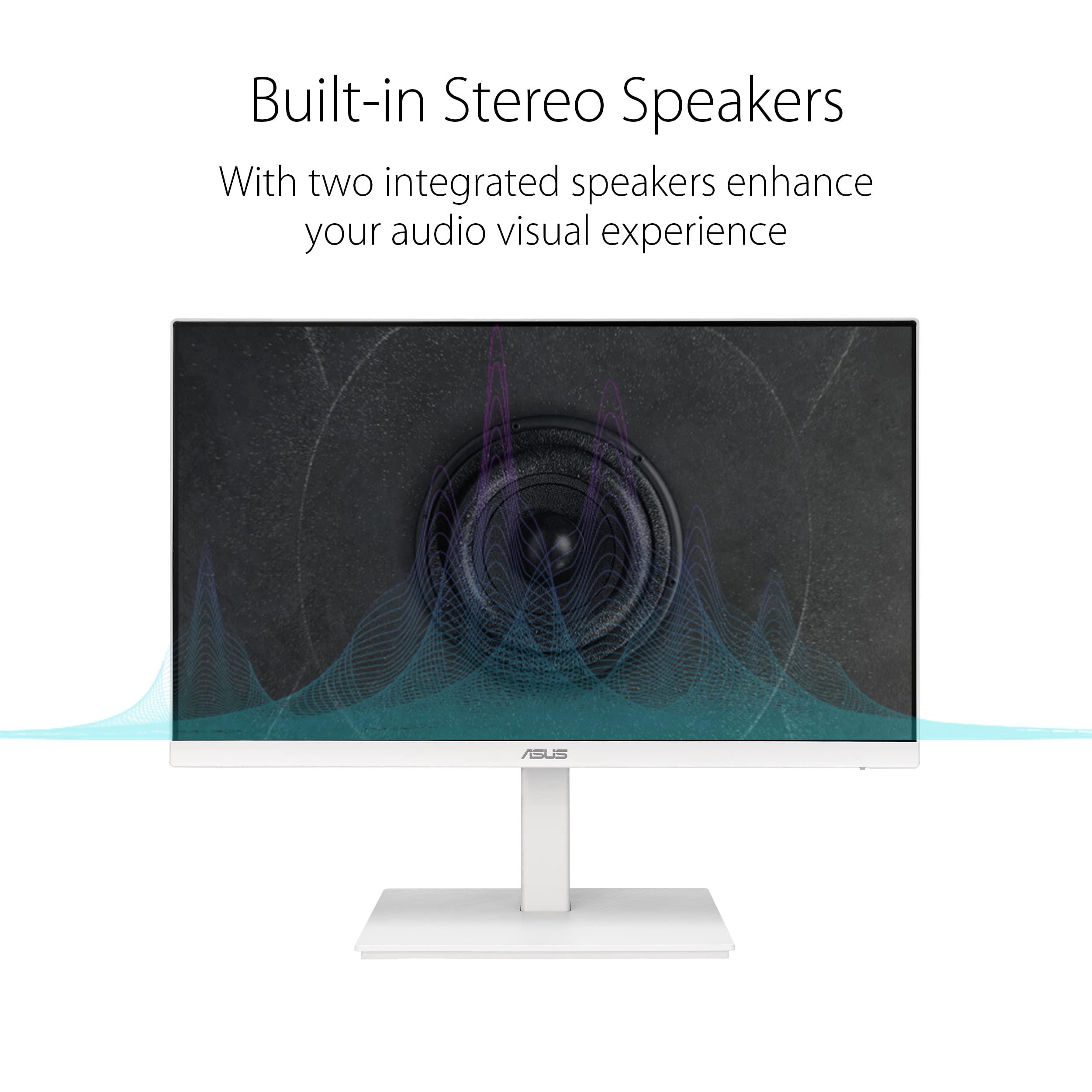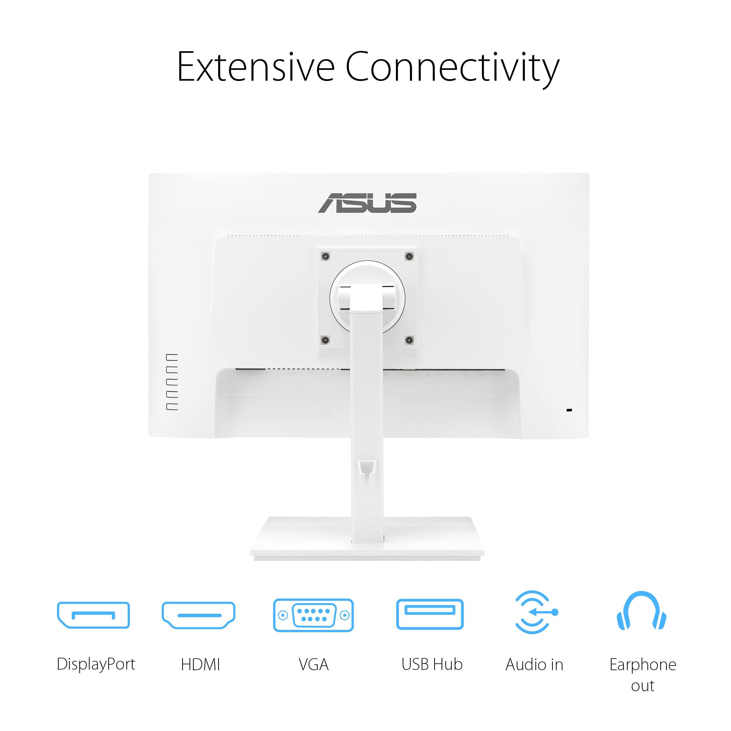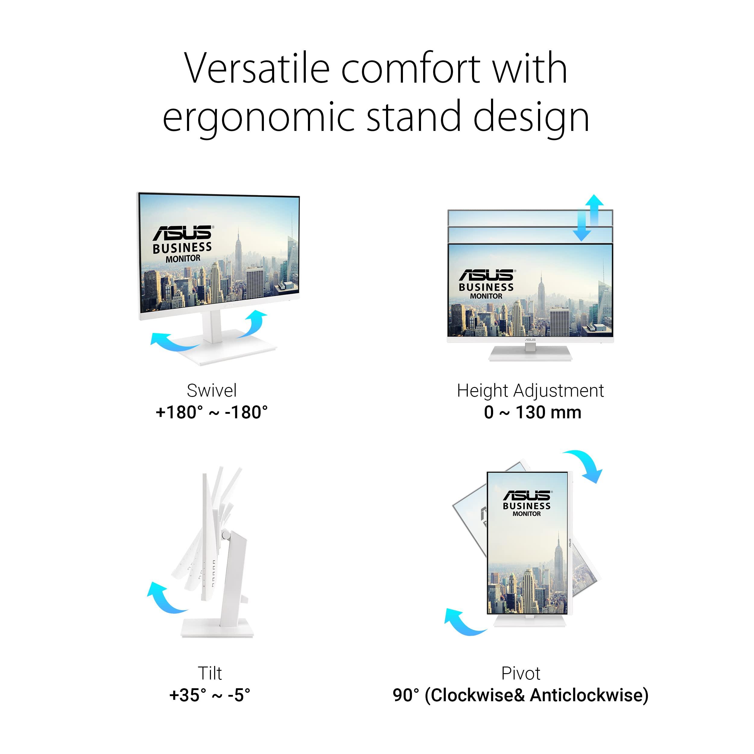 ASUS VA24EQSB-W Monitor Business 24, Full HD, IPS, 75 Hz, Tecnologia Adaptative-Sync a Basse Luci Blu Anti-Sfarfallio, Design Ergonomico Senza Cornice, Montabile a Parete, Bianco