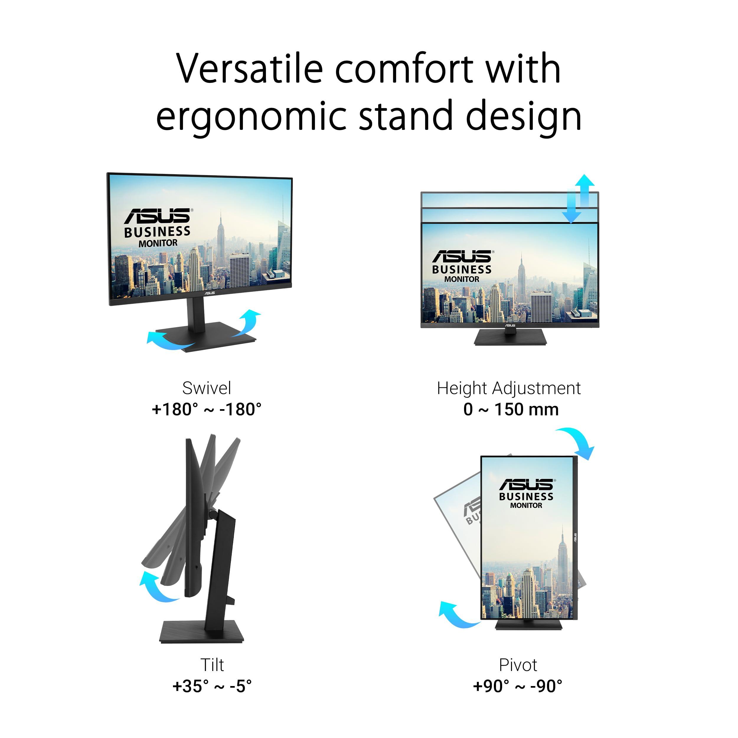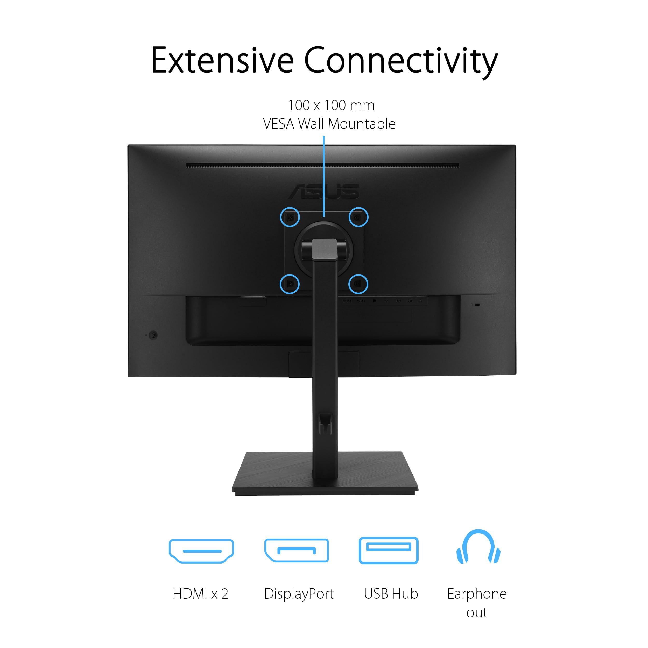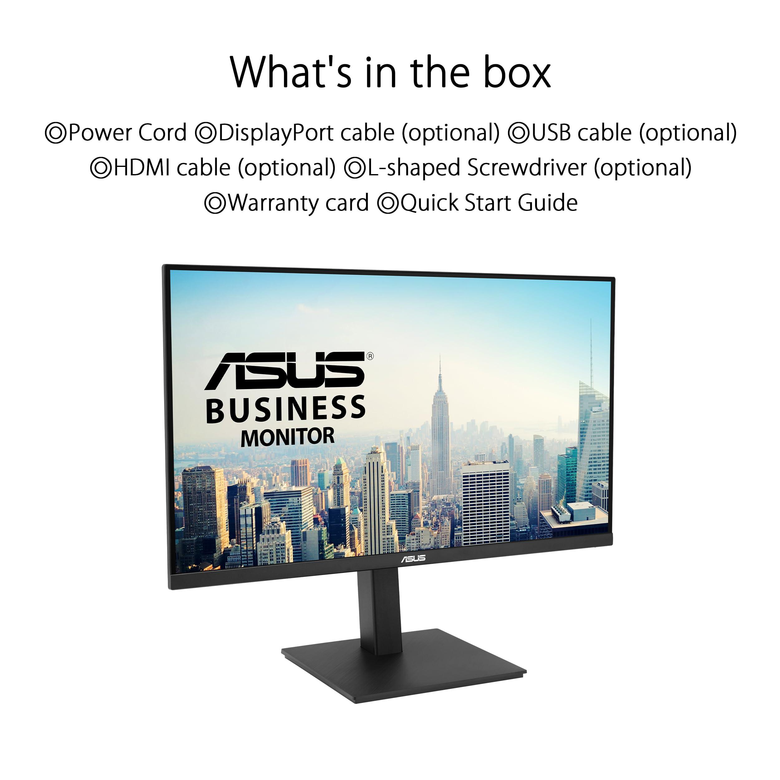 ASUS VA27UQSB Monitor Business da 27” pollici, 4K UHD (3840x2160), IPS, HDR-10, DisplayPort, 2 HDMI, Altoparlanti stereo, Anti-sfarfallio, Filtro Luce Blu, Design ergonomico, Montabile a parete, Nero