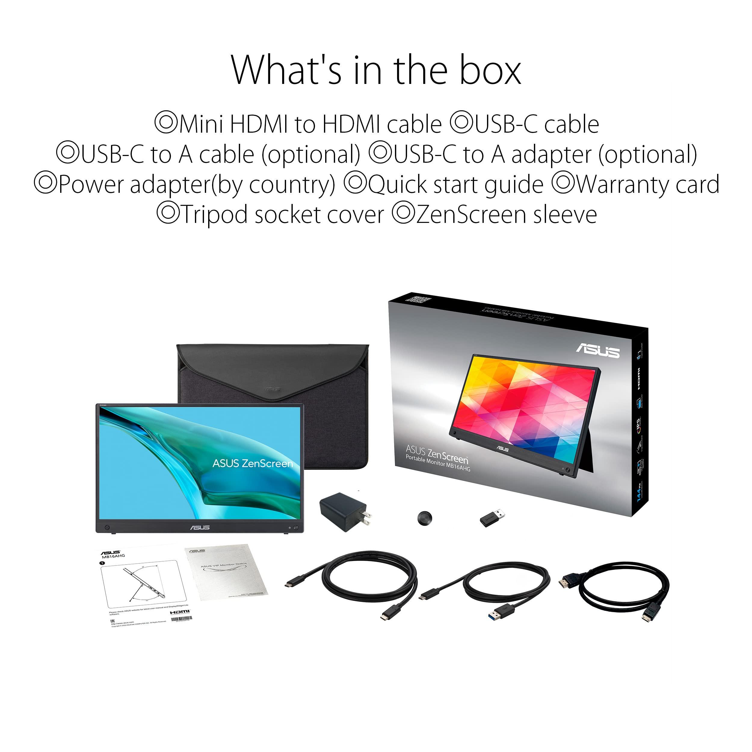 ASUS ZenScreen MB16AHG Monitor Portatile 16” pollici (15,6), FHD (1920 x 1080), IPS 144Hz, USB-C, Mini-HDMI, Freesync Premium, attacco per treppiede, Filtro Luci Blu, Anti-sfarfallio, Nero