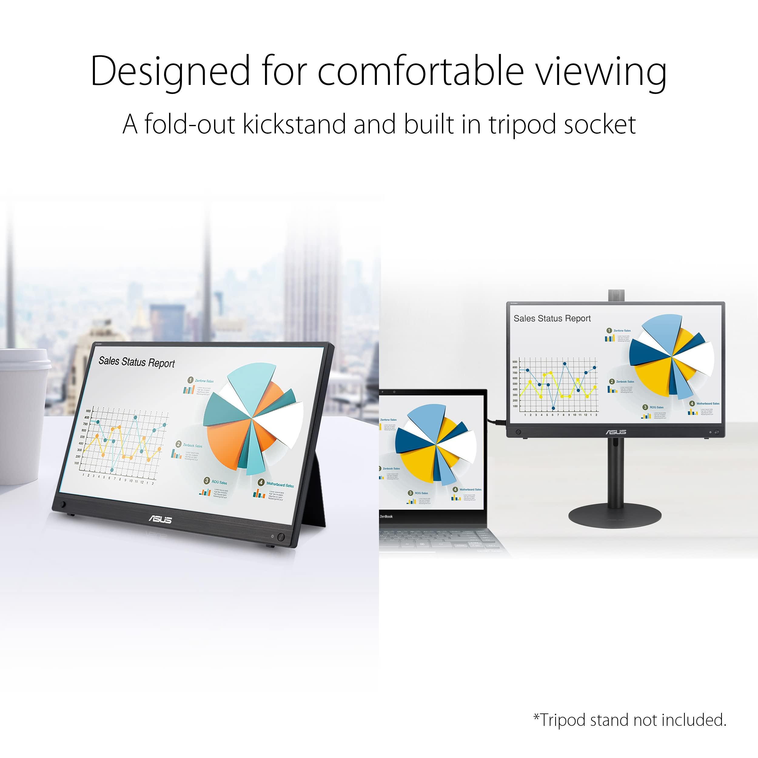 ASUS ZenScreen MB16AHG Monitor Portatile 16” pollici (15,6), FHD (1920 x 1080), IPS 144Hz, USB-C, Mini-HDMI, Freesync Premium, attacco per treppiede, Filtro Luci Blu, Anti-sfarfallio, Nero