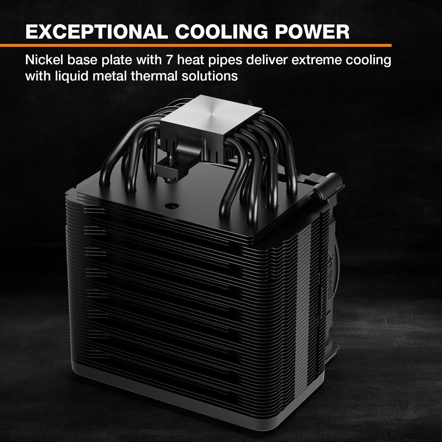 - Il Dark Rock Elite dispone di 7 heatpipe in rame ad alte prestazioni e 2 ventole Silent Wings, progettate appositamente per ottenere la massima pressione statica e il maggior airflow possibile. Di conseguenza, questo dissipatore di fascia alta permette al processore di mantenere le massime prestazioni, specialmente in sistemi dall’overclock spinto e in workstation con carichi di lavoro impegnativi.