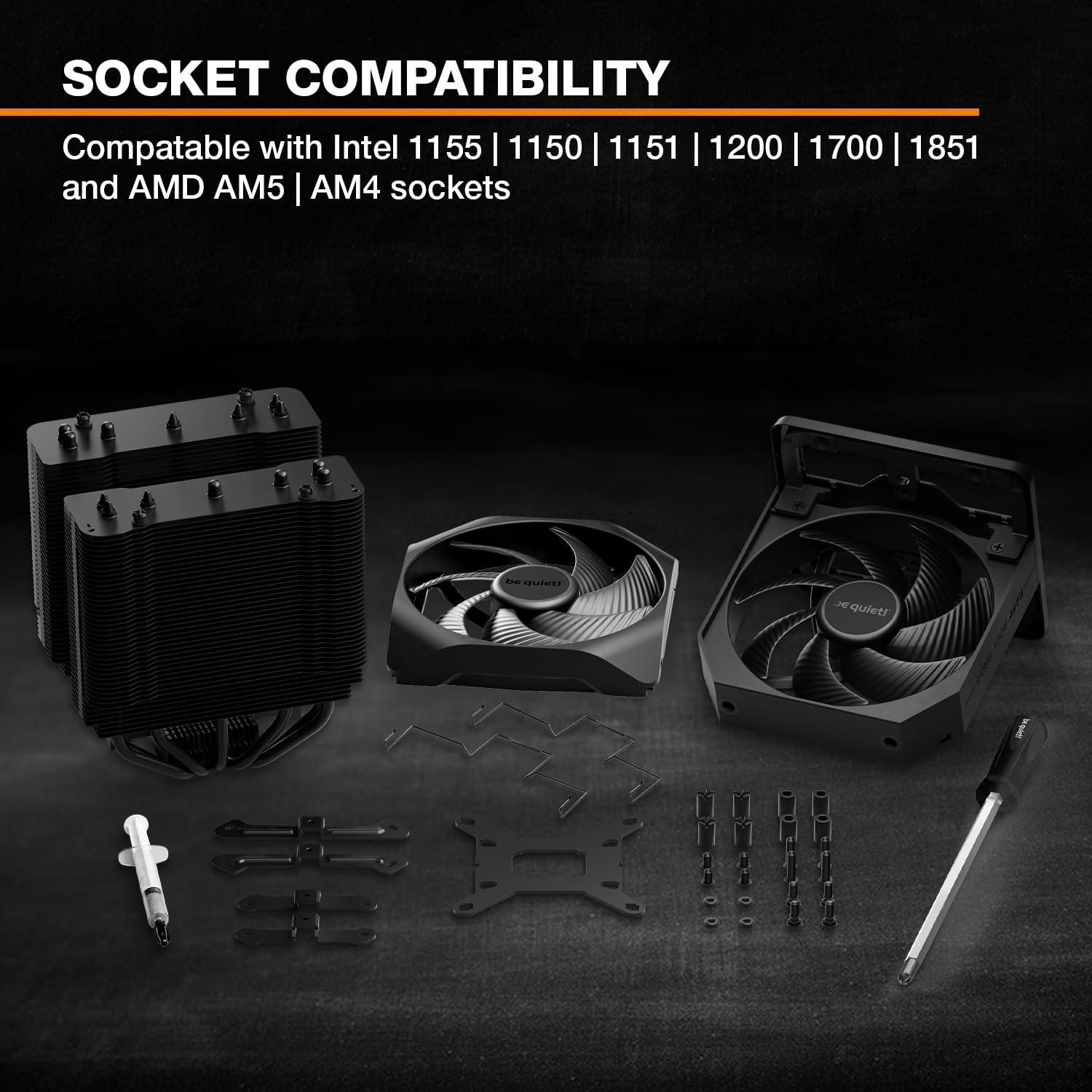 be quiet! Dark Rock Elite dissipatore, 2 ventole PWM Silent Wings 135mm, selettore velocità, heatpipe ad alte prestazioni, slitta ventola frontale, compatibile con RAM alte, LED ARGB, design robusto