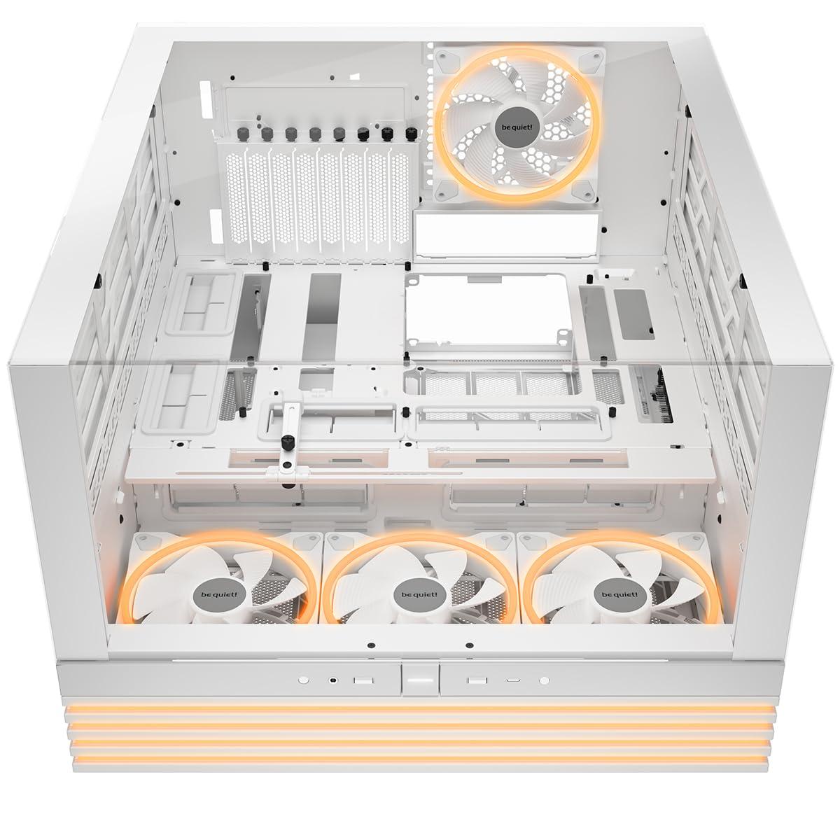 be quiet! Light Base 900 FX White PC Case, vista panoramica mozzafiato, show case, design Dual Chamber, striscia LED ARGB massiccia, 4 Light Wings PWM White, invertita e orizzontale