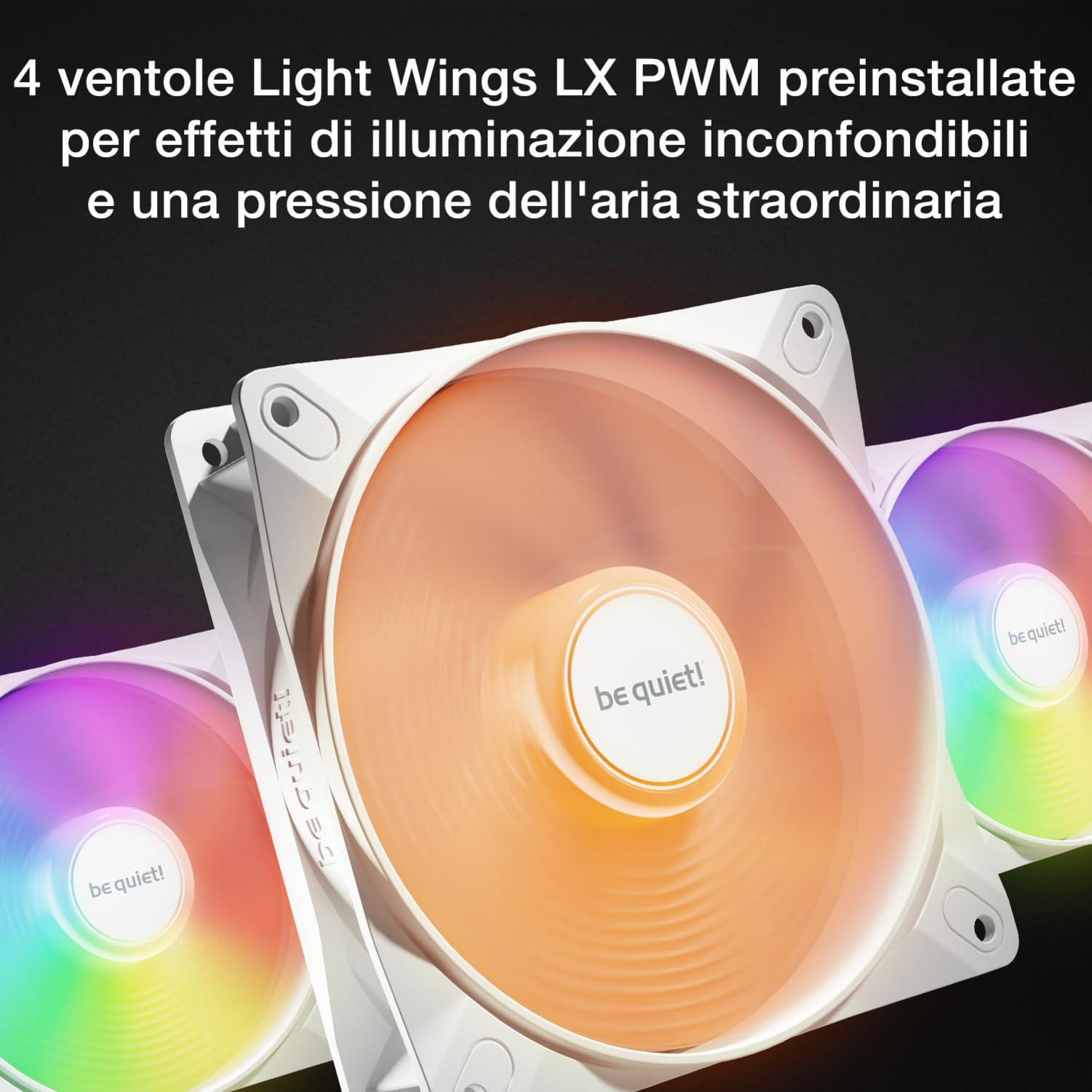 be quiet! Pure Base 501 LX White case per PC, airflow elevato, prestazioni elevate, 4 ventole Light Wings LX PWM, illuminazione ARGB, controller e hub ARGB-PWM, straordinaria pressione statica