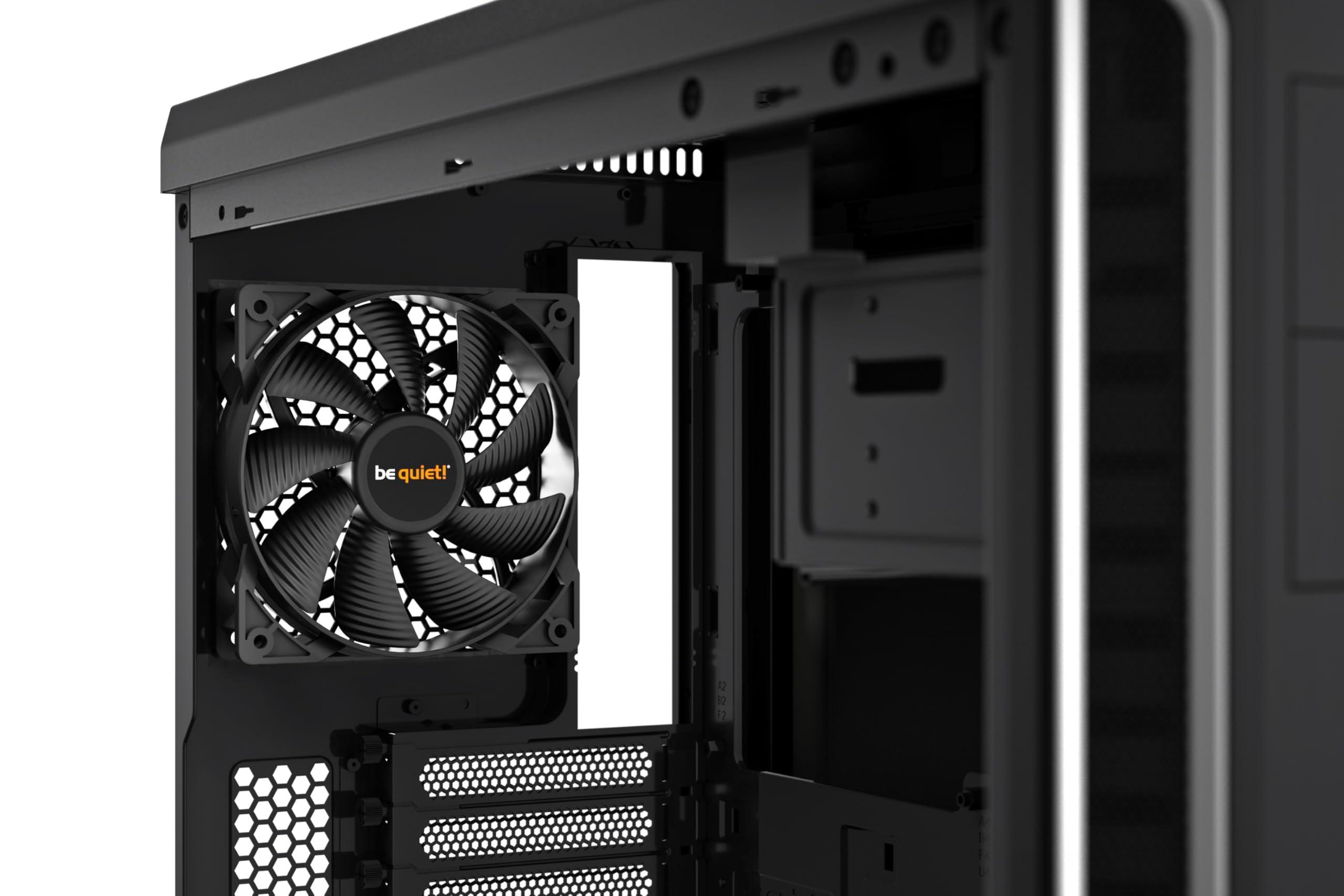 - 2 ventole Pure Wings 2 preinstallate con 9 pale ottimizzate per il massimo spostamento d’aria riducono le turbolenze ed aumentano la pressione dell’aria: 120mm nel retro, 140mm nella parte anteriore. È possibile installare fino a 4 ulteriori ventole.
