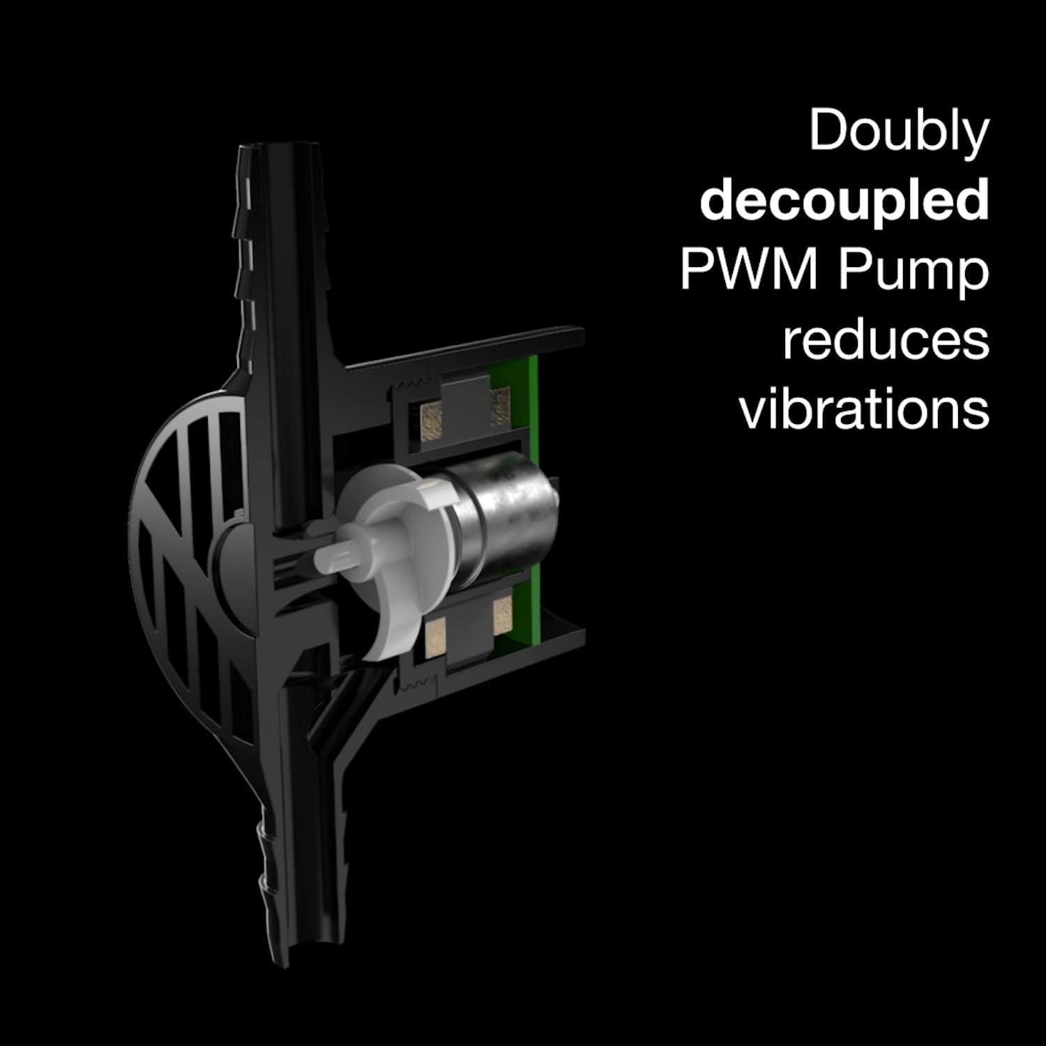- Pompa PWM silenziosa: Doppia decoupled per vibrazioni ridotte al minimo, regolabile via PWM per un funzionamento efficiente e silenzioso.