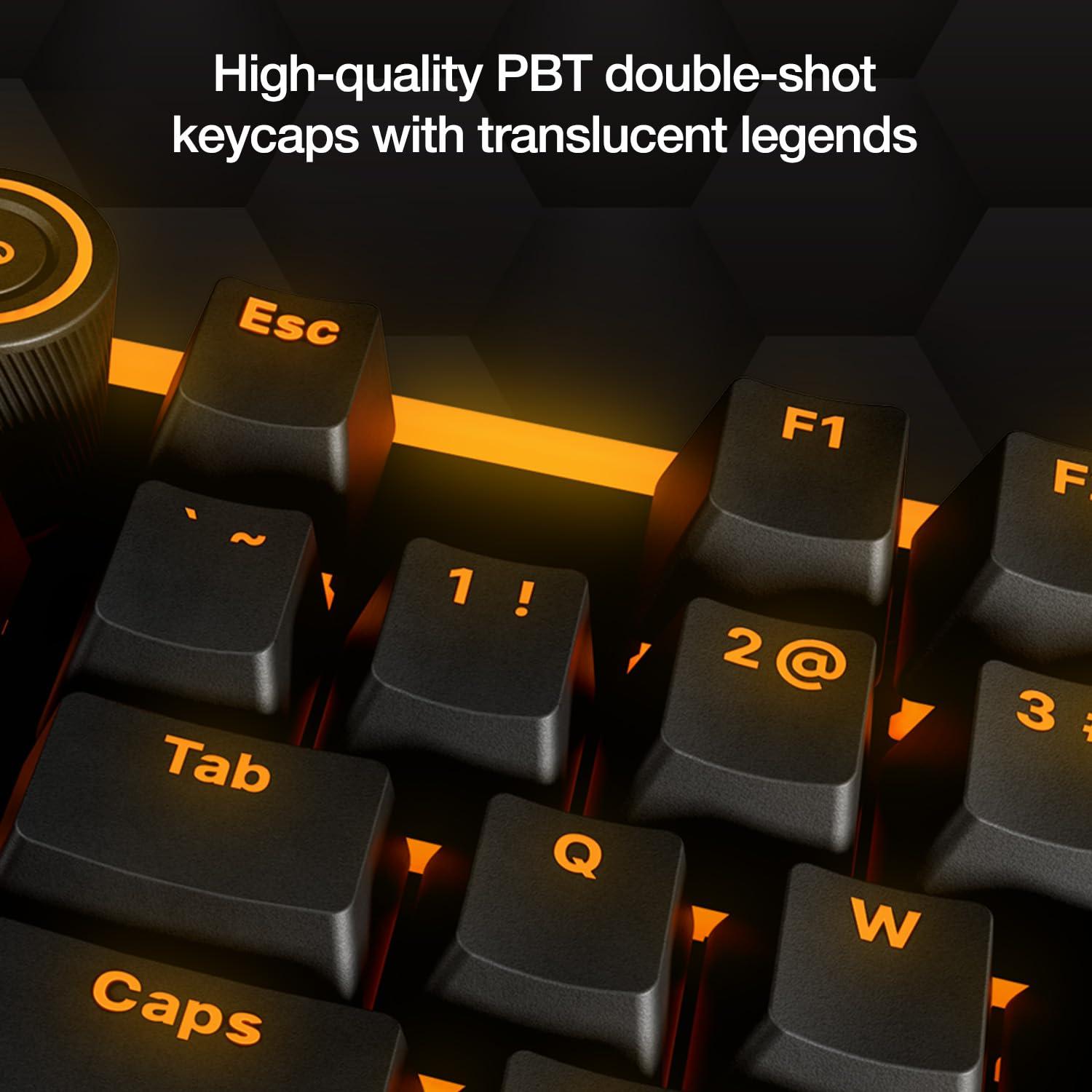- Il Light Mount massimizza la personalizzazione grazie all'illuminazione ARGB sotto ogni tasto. Evidenziate i tasti importanti con colori o scegliete effetti impressionanti. La scritta trasparente dei keycap double-shot si illumina brillantemente grazie al diffusore curvo. Inoltre, il bordo superiore brilla nei tuoi colori preferiti, mentre le strisce LED ARGB laterali forniscono una sottile illuminazione inferiore. Questa tastiera si adatta perfettamente a qualsiasi PC da gioco RGB.