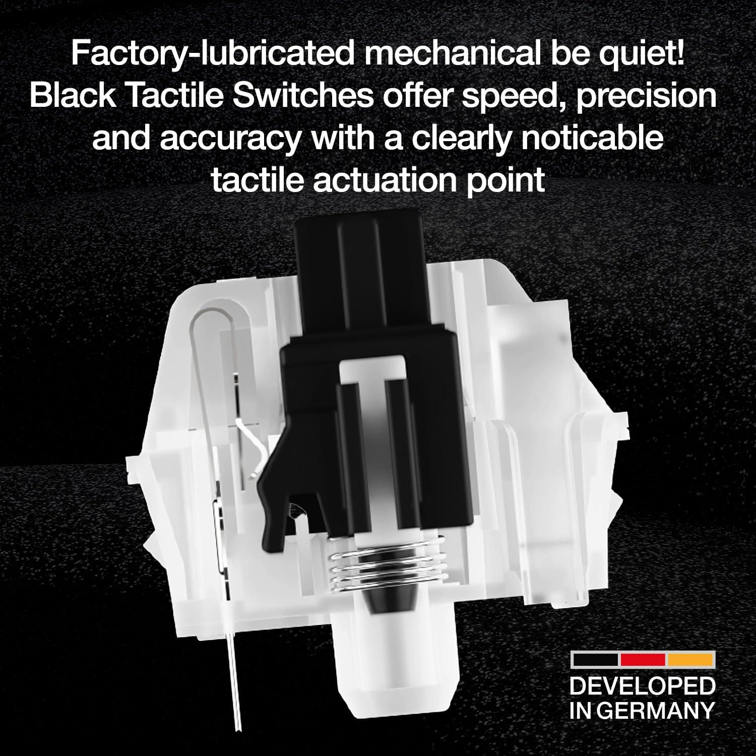 - Ogni pressione è veloce e precisa, ma silenziosa. I nostri silenziosi interruttori tattili neri sono pre-lubrificati per ridurre l'attrito e il rumore. Abbiamo anche fatto uno sforzo aggiuntivo per lubrificare gli stabilizzatori che si trovano sotto ogni tasto grande, come Spazio e Invio, che spesso possono emettere un fastidioso rumore di scossoni se non trattati adeguatamente. Gli appassionati di personalizzazione apprezzeranno che ogni interruttore sia sostituibile a caldo con altri interruttori in stile MX a 5 pin.