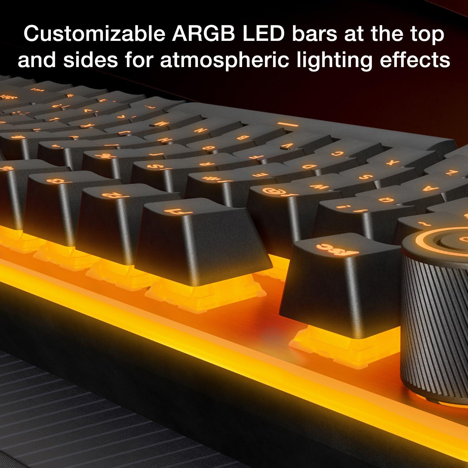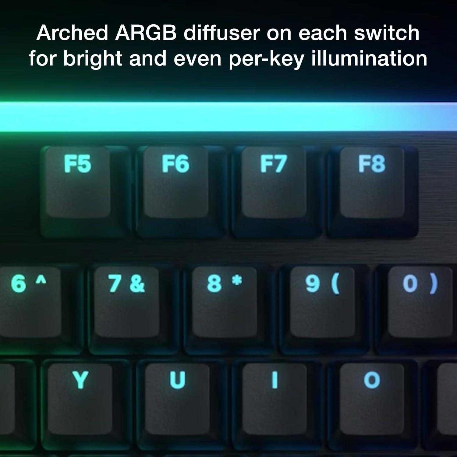- Le opzioni di personalizzazione di Light Mount vengono massimizzate con l'illuminazione ARGB per tasto. Evidenzia i tasti importanti o crea effetti sorprendenti. Le legende traslucide dei tasti a doppio scatto brillano di luce propria grazie a un diffusore arcuato su ogni interruttore. Il bordo superiore della tastiera brilla anche nei tuoi colori preferiti, mentre le strisce ARGB sui lati offrono un sottile effetto di bagliore.
