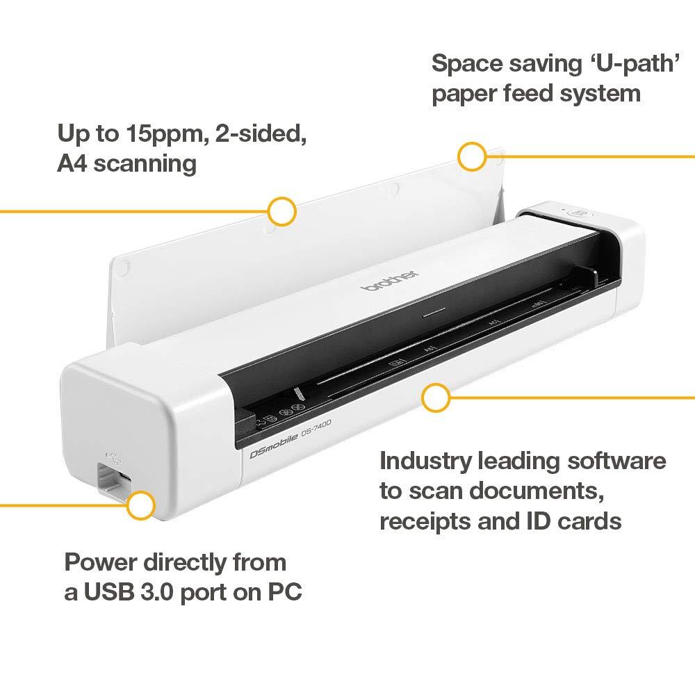 Brother DS740D | Scanner Portatile A4 | 15 ppm | Scan Fronte/Retro Dual Cis | Autoalimentato Tramite USB