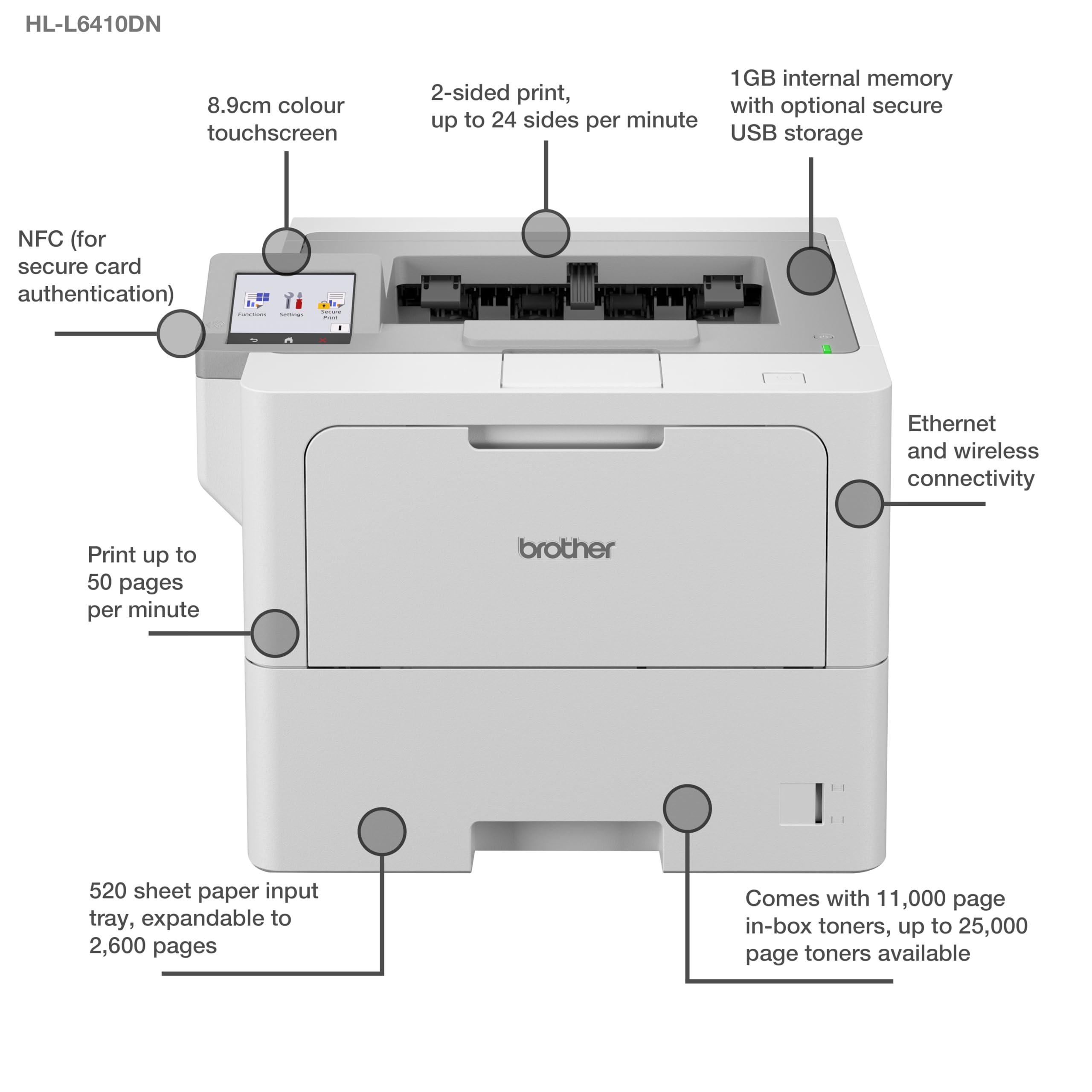 - BROTHER Forniture originali: toner da 11.000 pagine incluso, 25.000 toner per pagine disponibili, è possibile continuare a stampare più a lungo senza la necessità di sostituire il toner