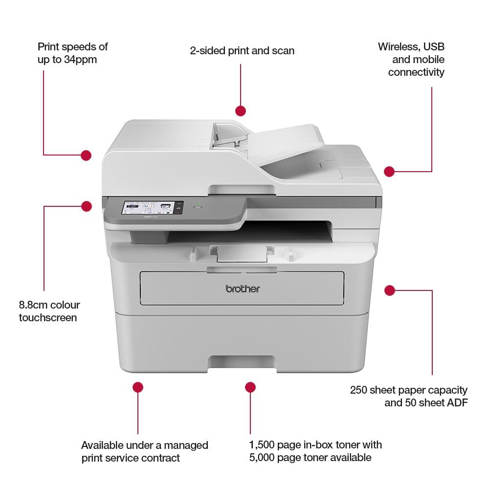 - STAMPA COMPATTA E PROFESSIONALE: Stampa aziendale a un prezzo inferiore con velocità di stampa elevate, memoria interna da 256 MB e touchscreen LCD a colori da 8,8 cm e autenticazione sicura NFC