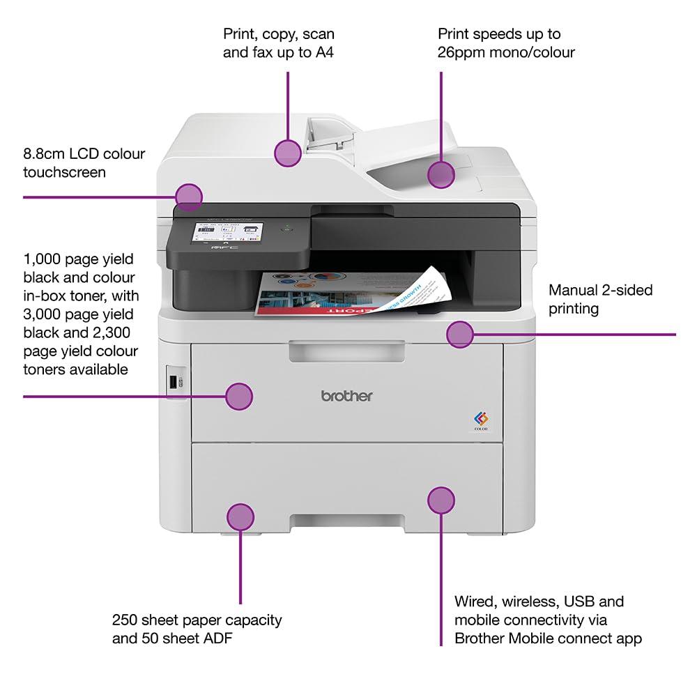 - BROTHER Forniture autentiche: toner nero e a colori con resa di 1.000 pagine, con resa di 2.300 pagine in nero e resa di 3.000 pagine disponibili, è possibile continuare a stampare più a lungo senza la necessità di sostituire il toner
