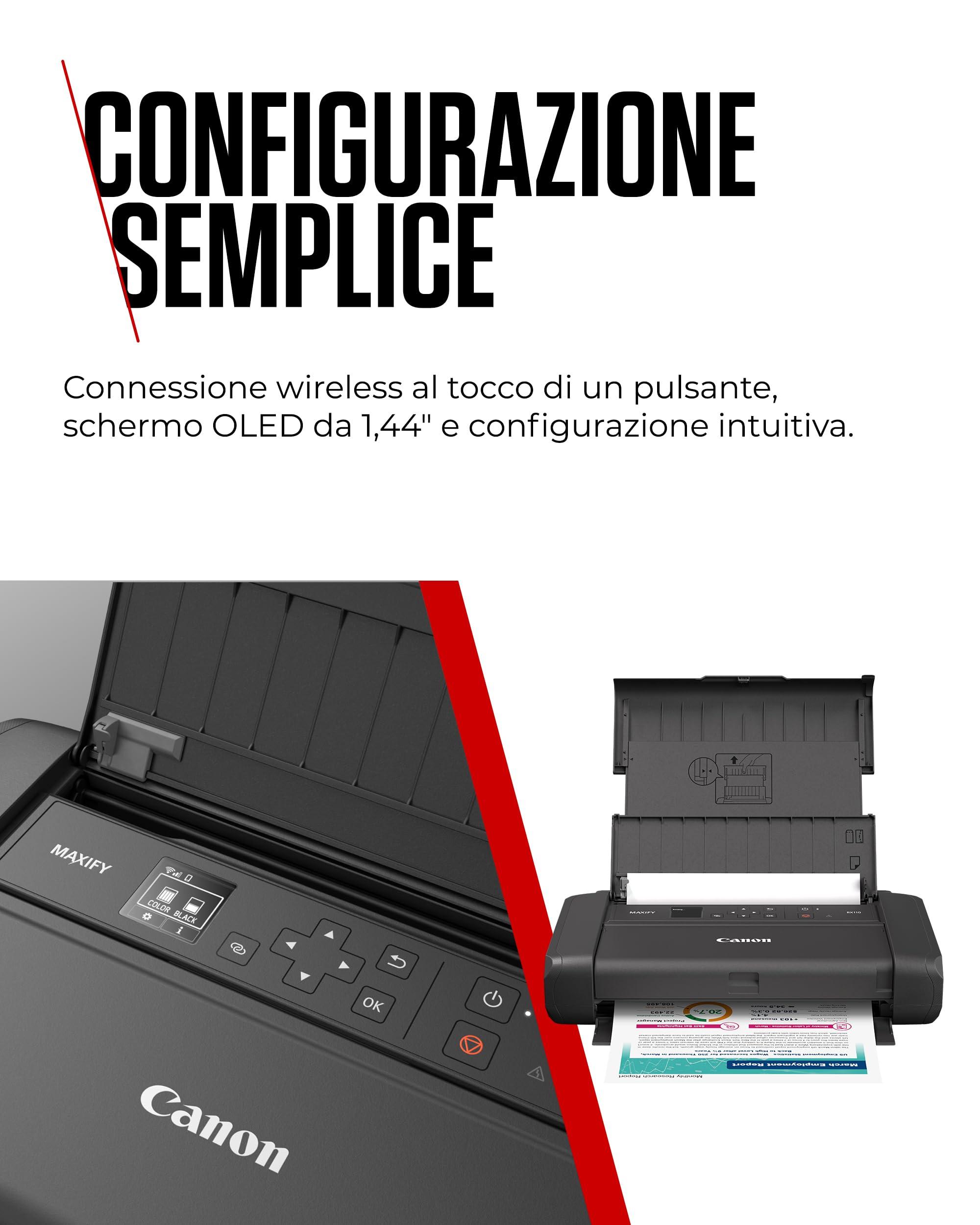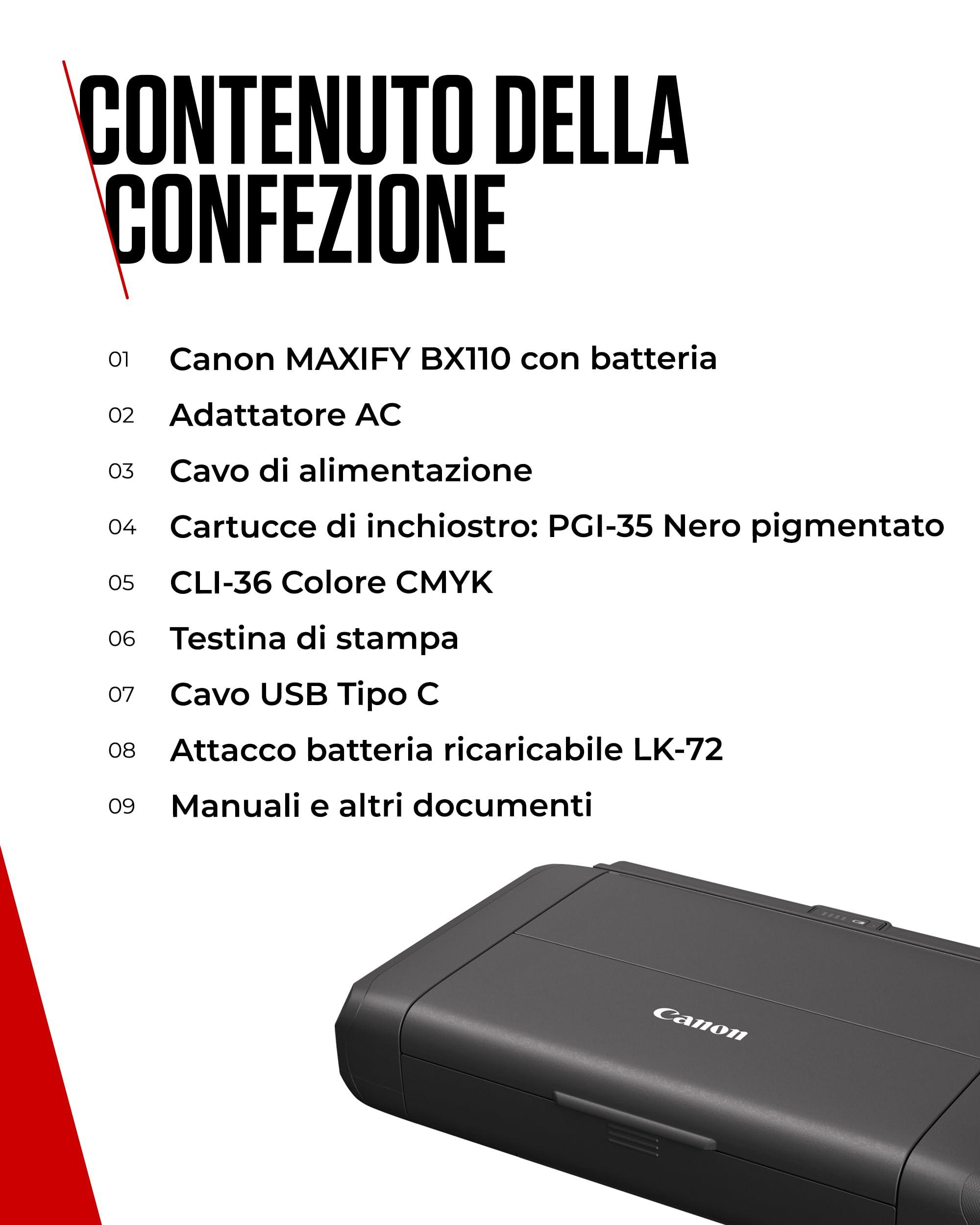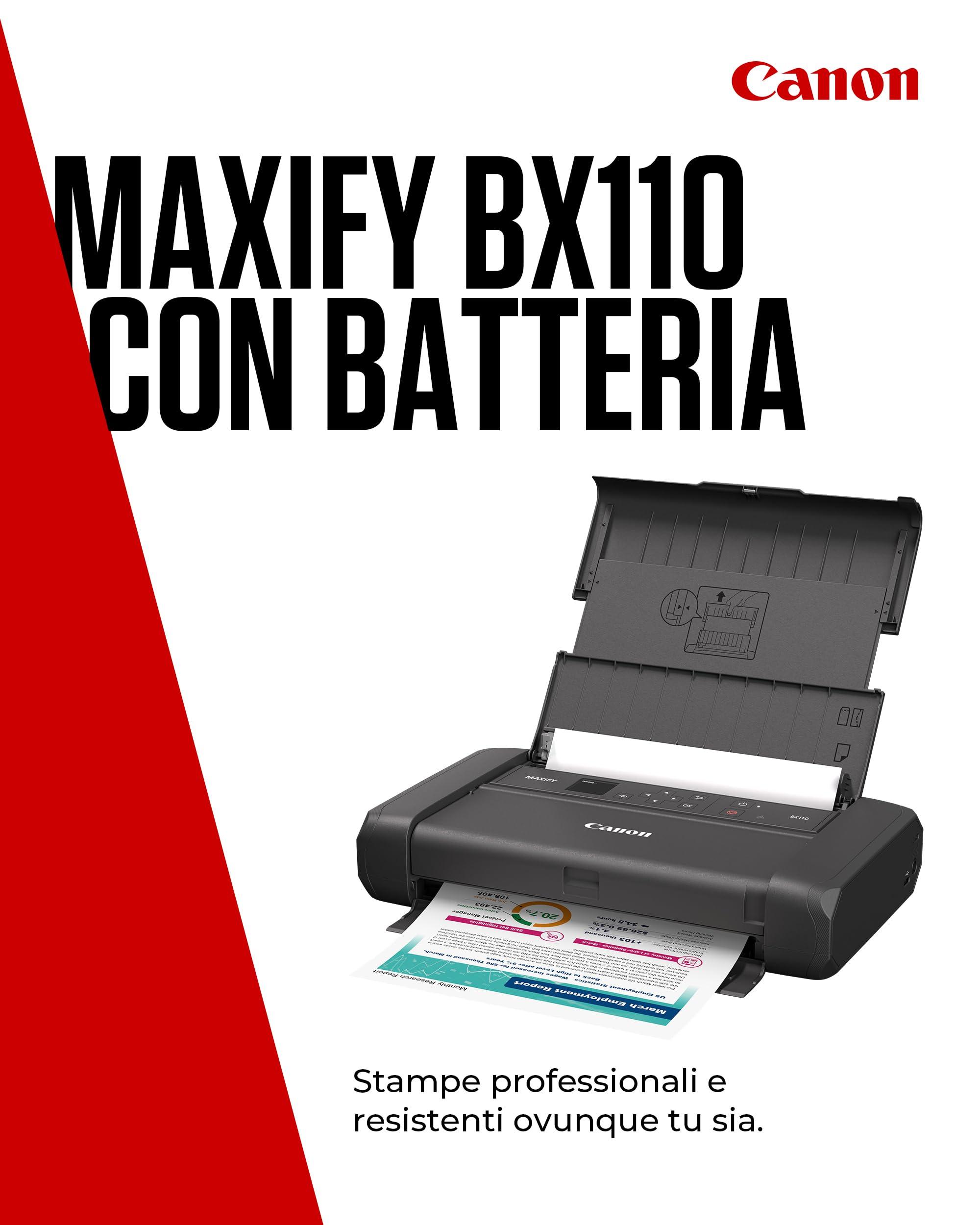 Canon MAXIFY BX110 Stampante Compatta – Stampante WiFi con Batteria Ricaricabile, Supporta Fogli fino a Formato A4 | Adatta a Home Office e Viaggi | Stampa da Laptop, PC o Smartphone PRINT