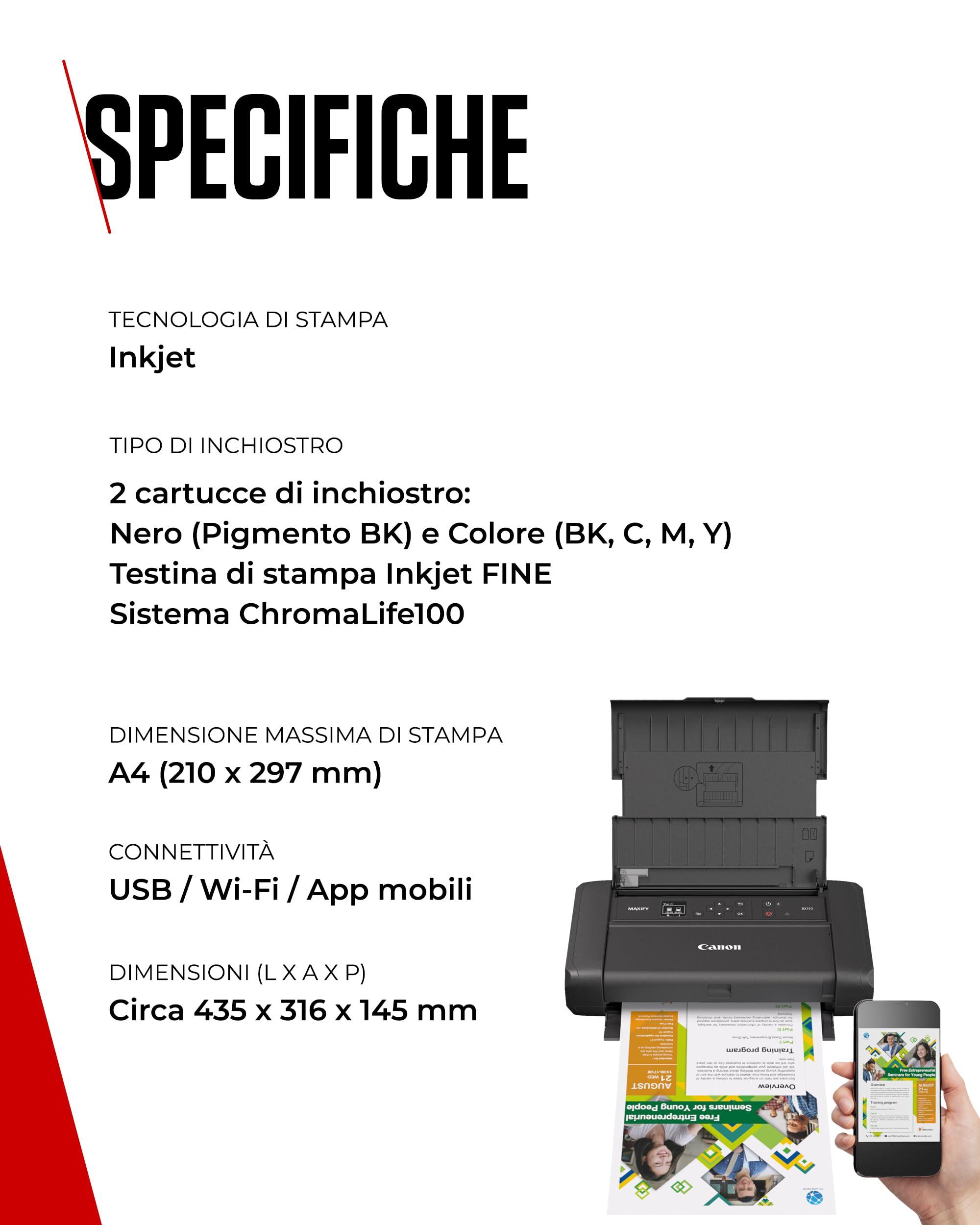 - CANON: Una stampante Canon di alta qualità, pensata per garantire convenienza e prestazioni di stampa eccellenti ogni volta. Per risultati ottimali, usala con cartucce d’inchiostro e carta originali Canon