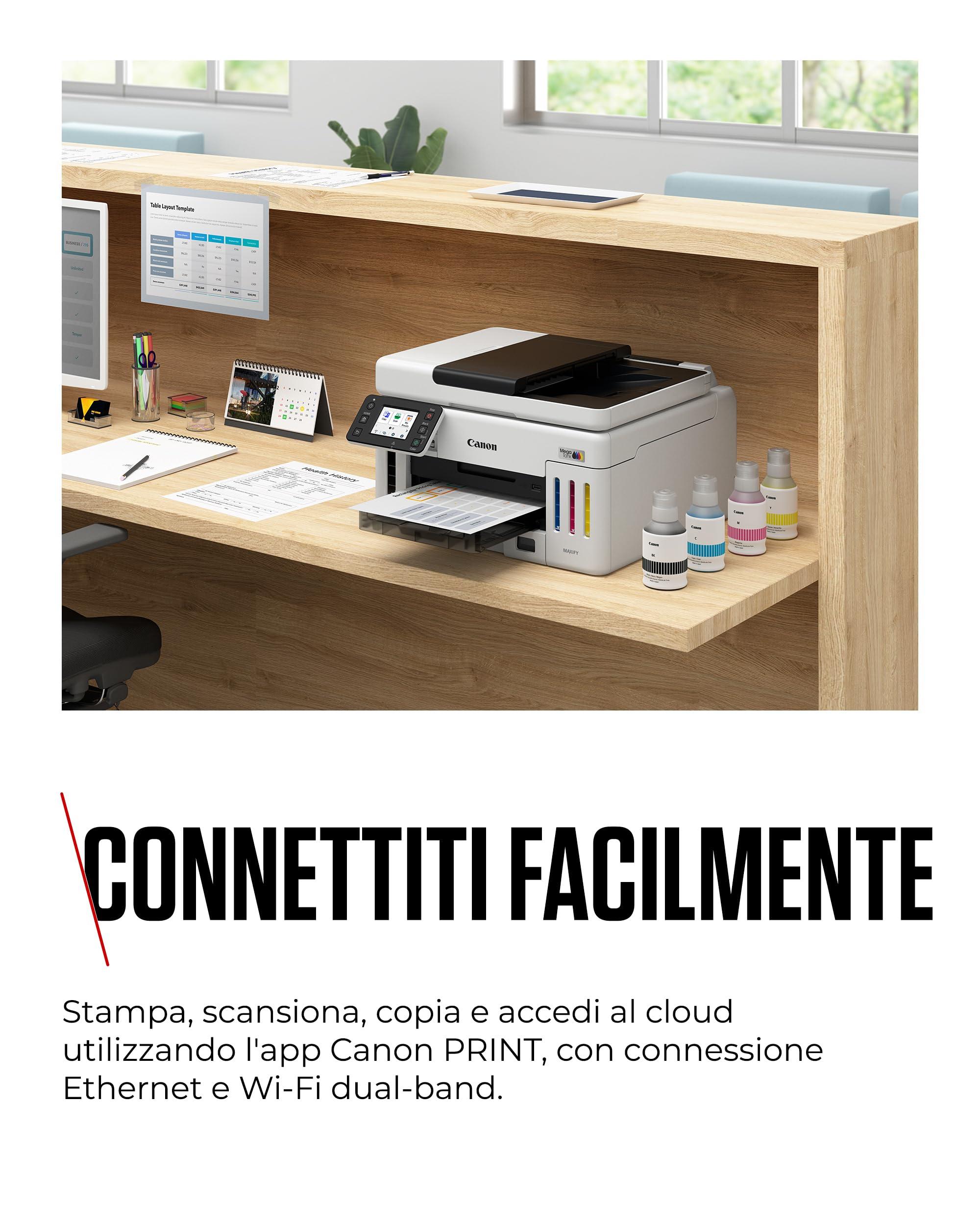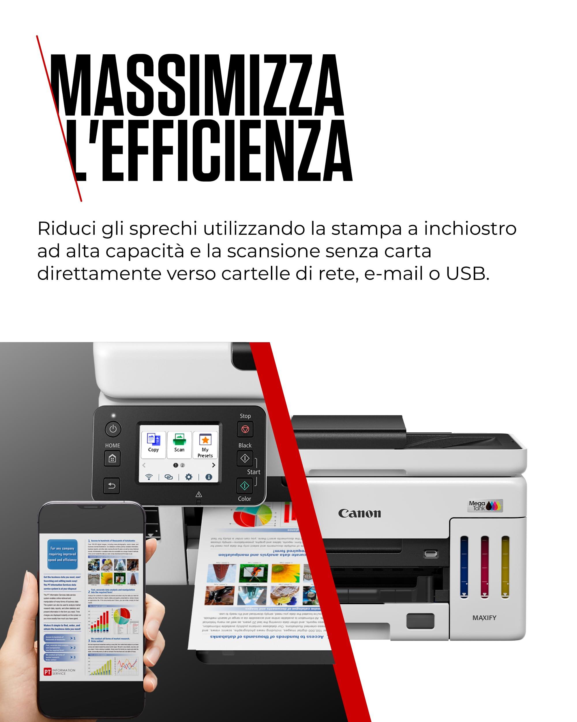 Canon MAXIFY GX6150 Stampante Ufficio Compatta – Stampante con Scanner Multifunzione | Tecnologia MegaTank per Stampe, Copie e Scansioni | Connessione Wireless, Ethernet e USB