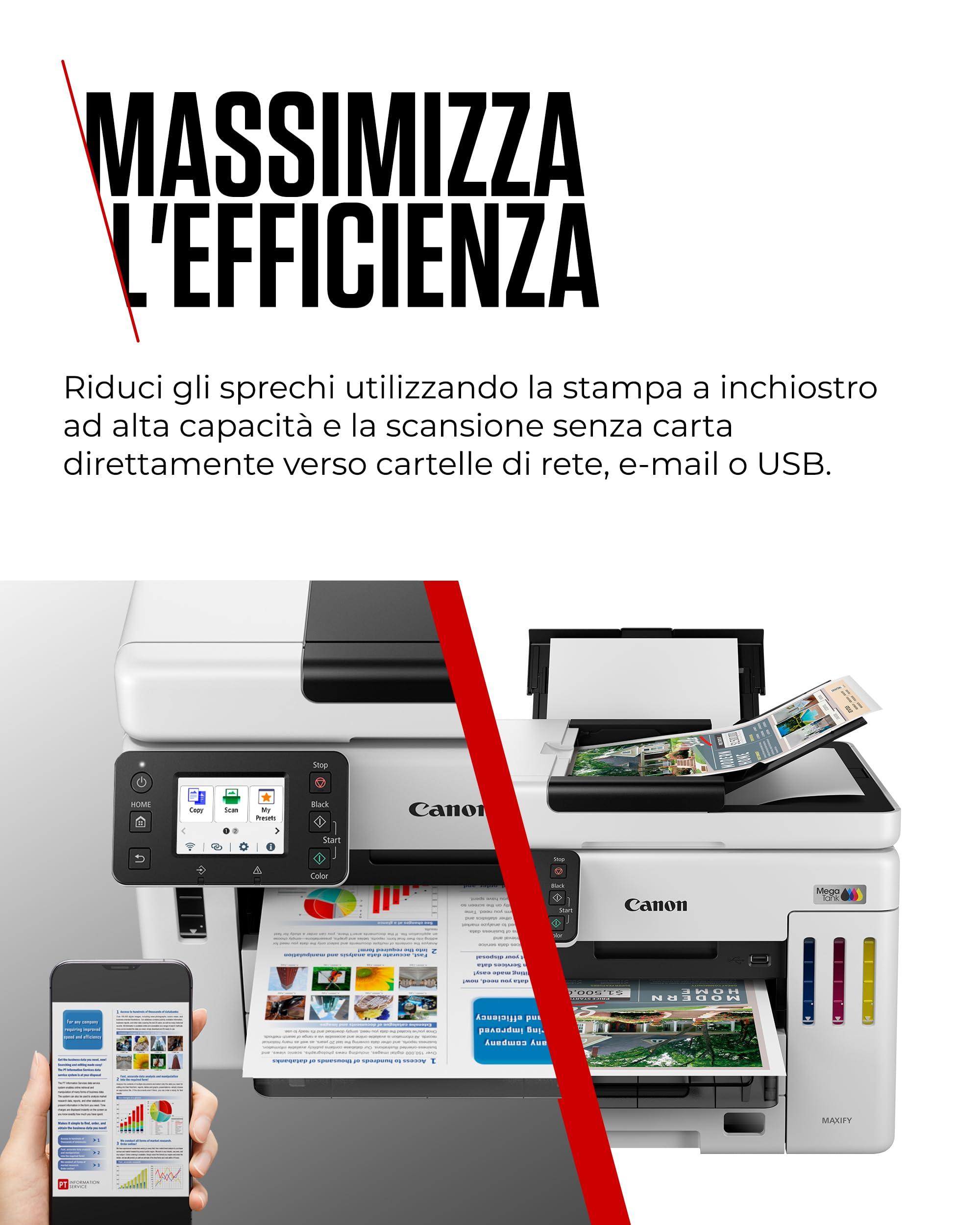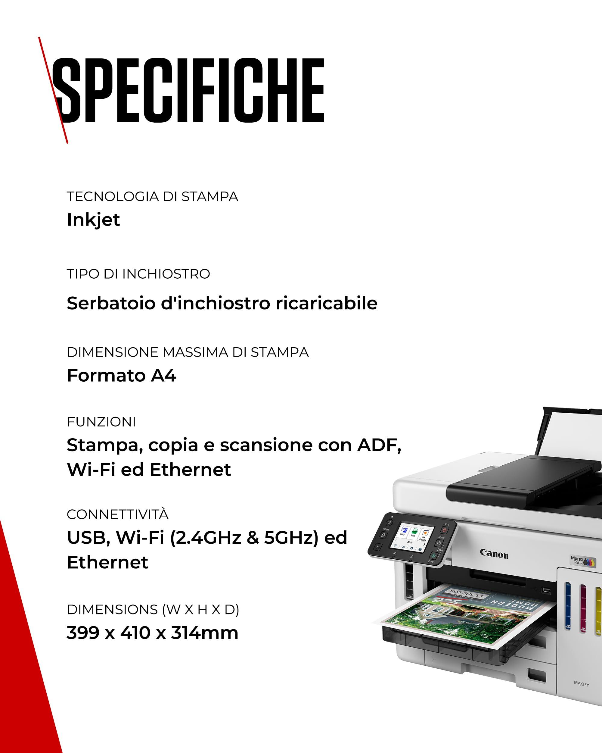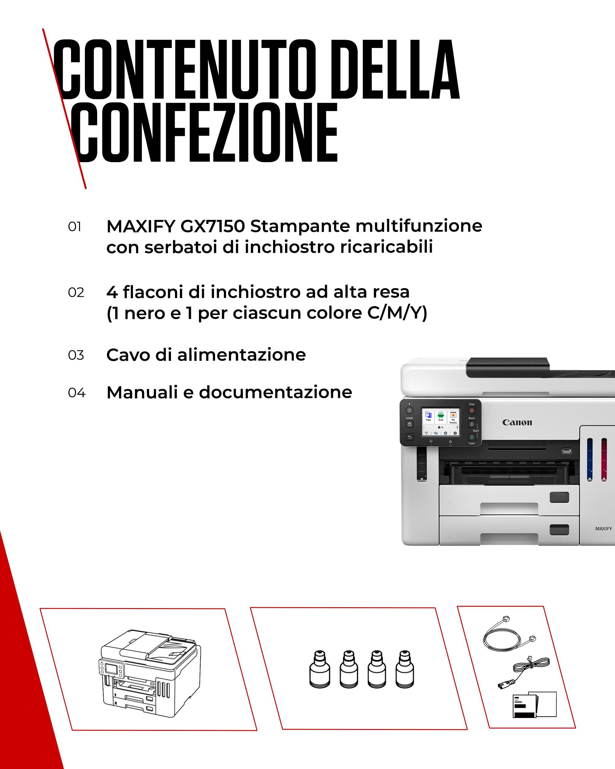 Canon MAXIFY GX7150 Stampante Ufficio Compatta – Stampante con Scanner Multifunzione | Tecnologia MegaTank per Stampe, Copie e Scansioni | Connessione Wireless, Ethernet e USB