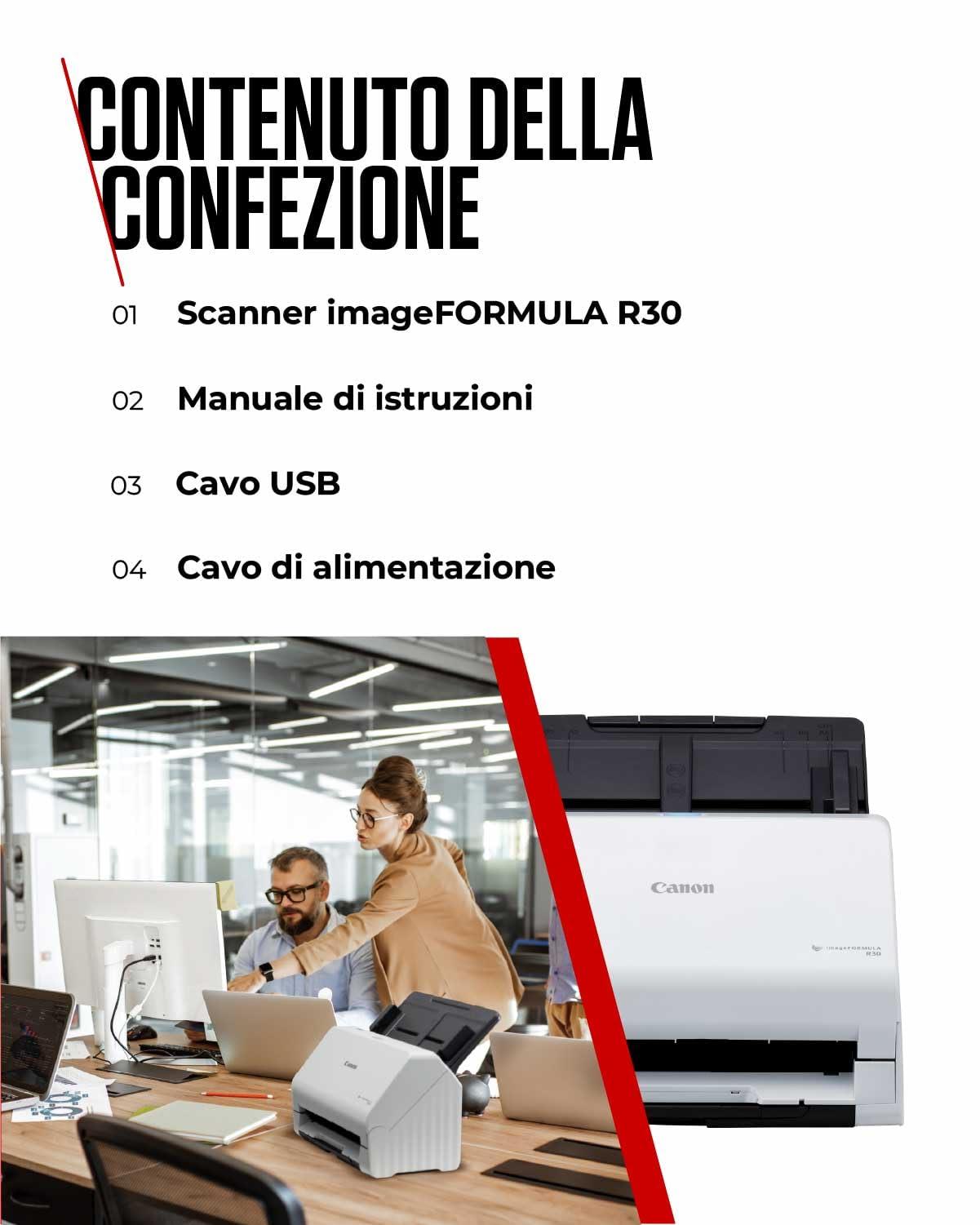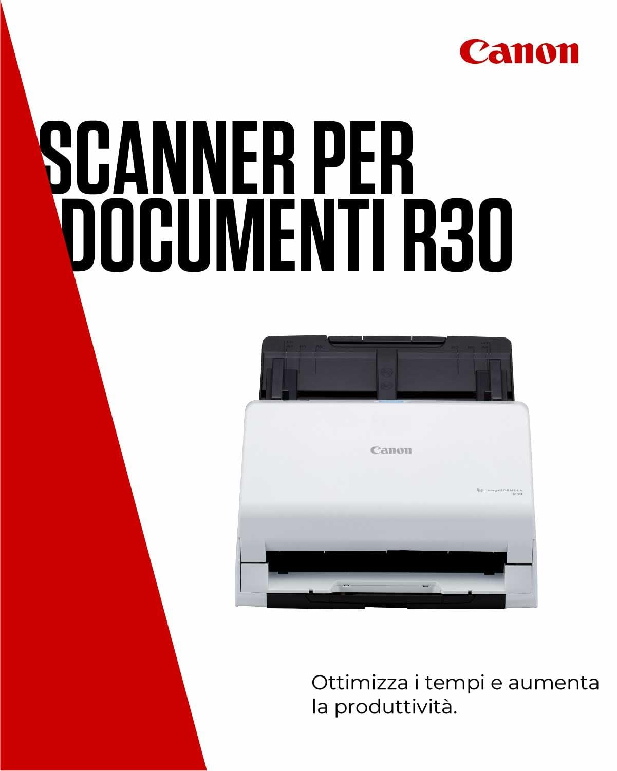 - SCANNER CANON: Canon imageFORMULA R30 è uno scanner da scrivania ideale per casa o ufficio – si configura rapidamente e, grazie al riconoscimento ottico dei caratteri (OCR), crea file ricercabili e modificabili