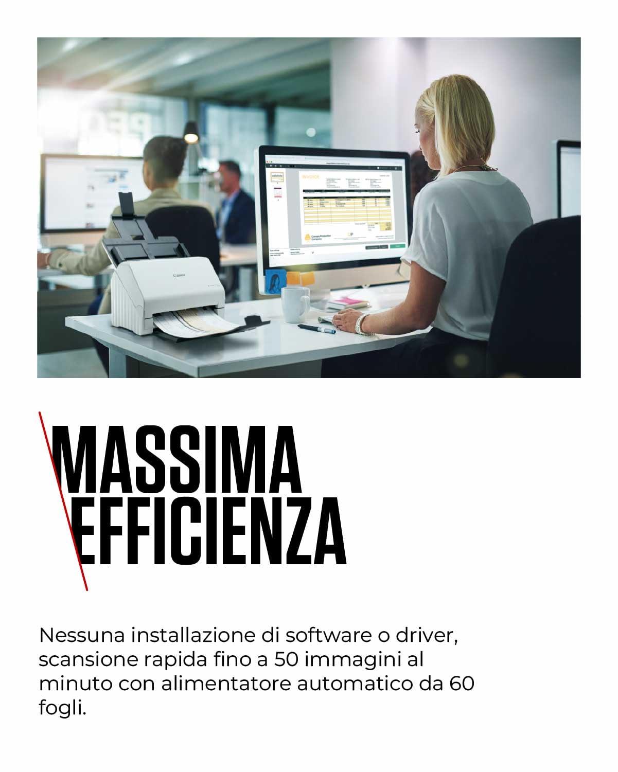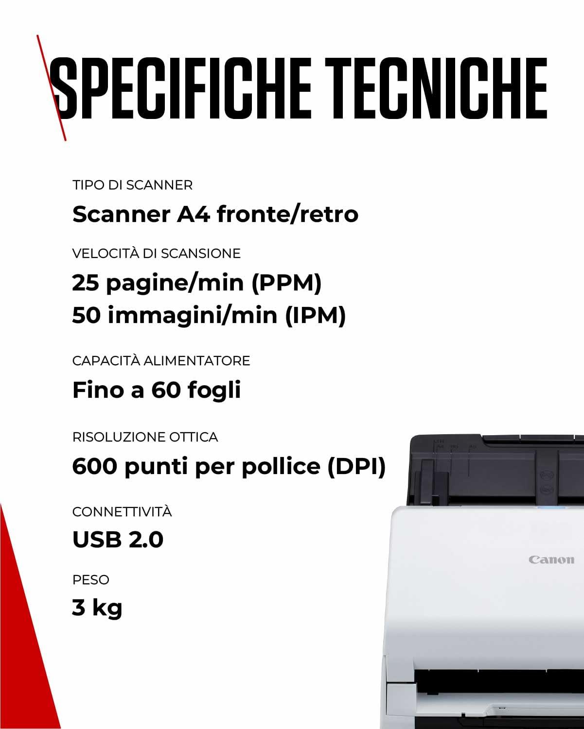 - VELOCE: Scansiona fino a 50 immagini al minuto grazie alla scansione fronte/retro e all'ampio alimentatore ADF da 60 fogli – per qualsiasi tipo di documento, da carta A4 a ricevute e biglietti da visita, con risultati di alta qualità