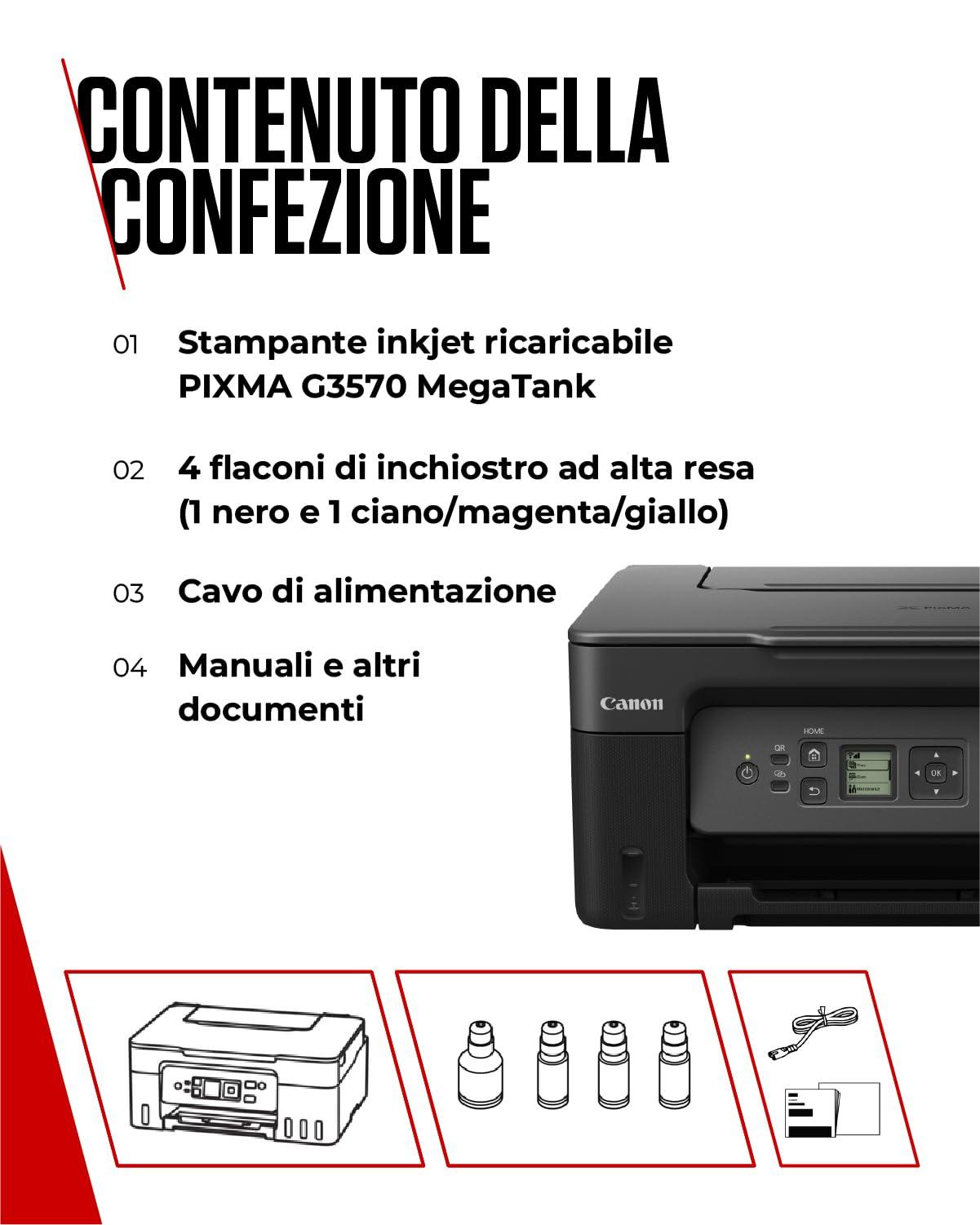 Canon Serie PIXMA G3570 - Stampante Multifunzione, Fotocopiatrice e Scanner MegaTank per la Casa | Connettività Wireless per Smartphone | Stampante Wifi per Uso Domestico