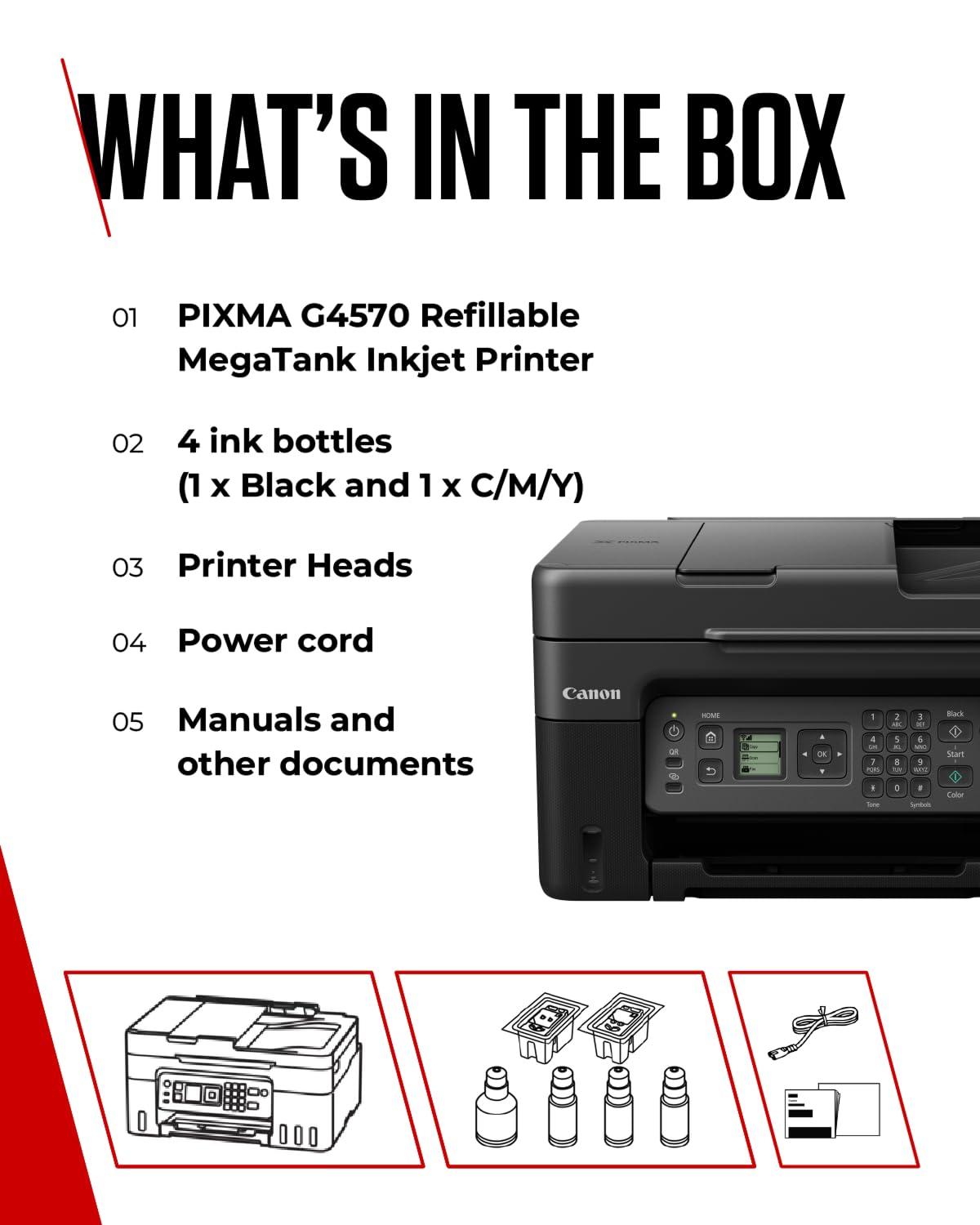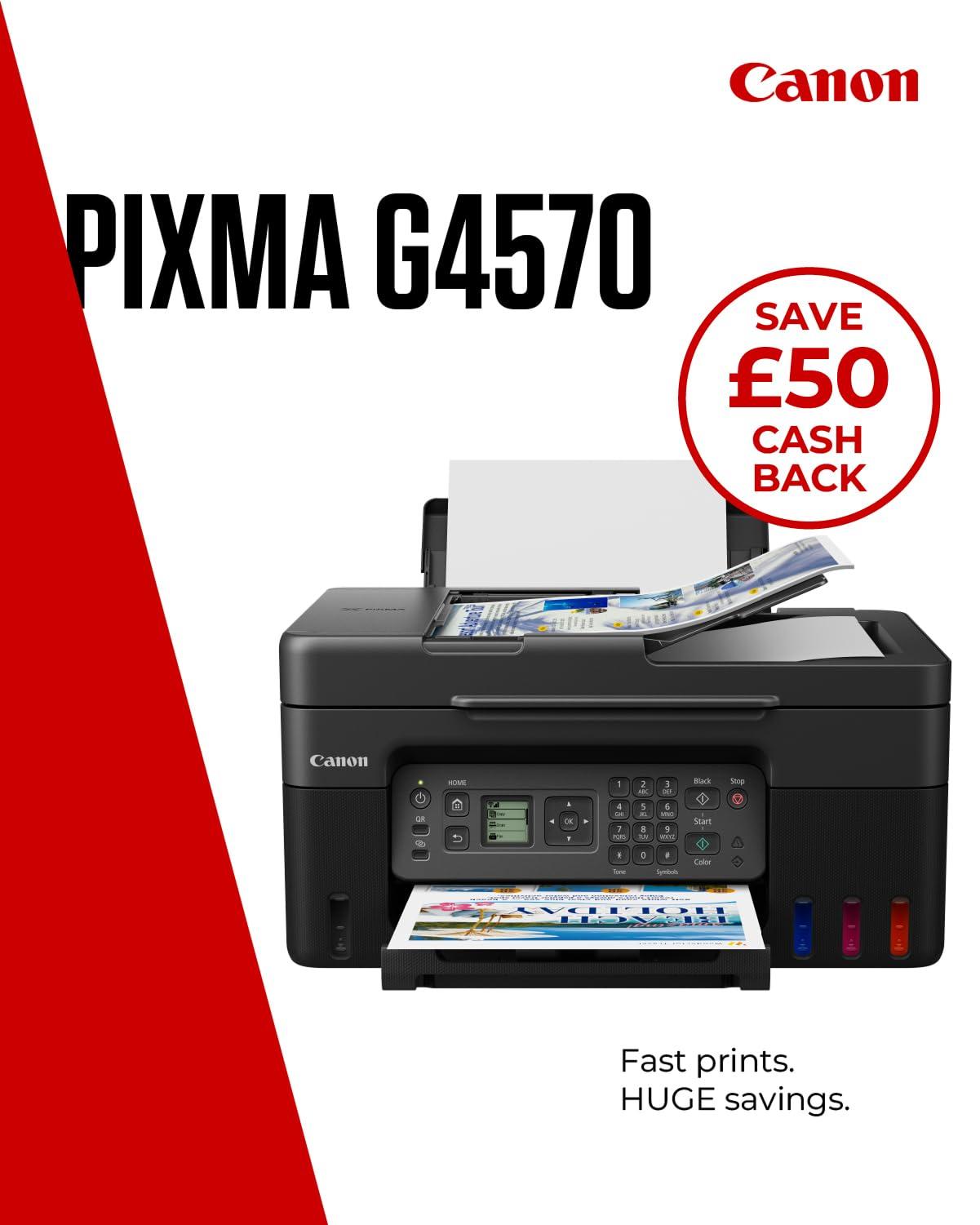 Canon Serie PIXMA G4570 - Stampante Multifunzione, Fotocopiatrice, Scanner e Fax MegaTank per la Casa | Connettività Wireless per Smartphone | Stampante Wifi per Uso Domestico