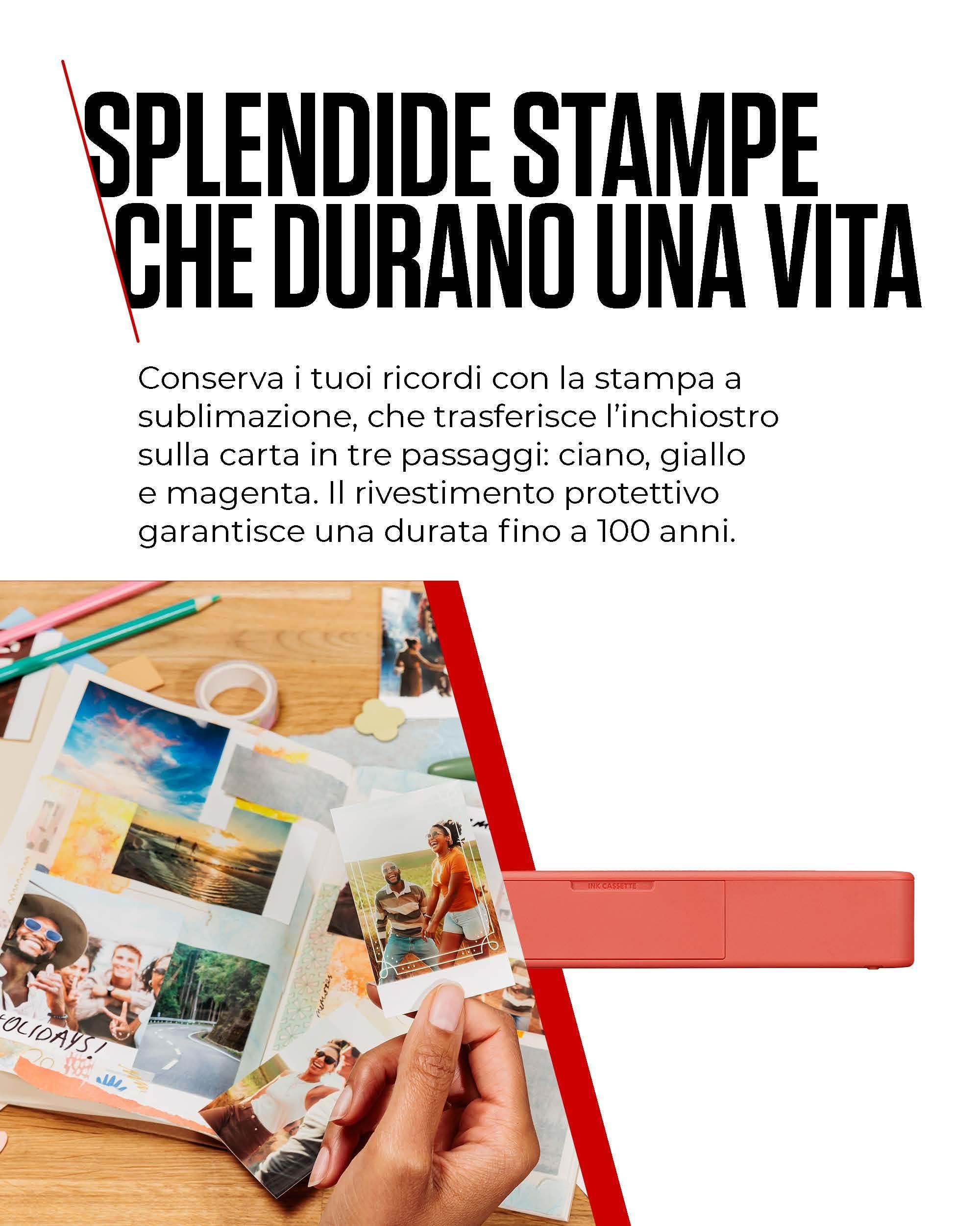 - Stampa le tue immagini in due formati: quadrato con la carta XS-20L e carta di credito con la carta XC-20L/XC-60L
