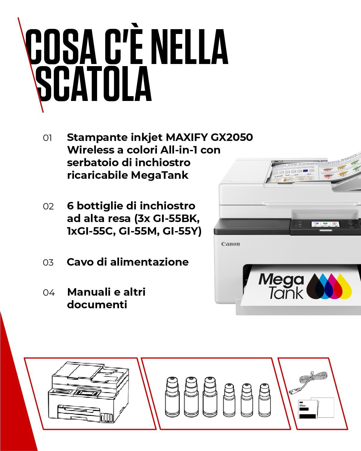 Canon Stampante WiFi per Casa e Ufficio MAXIFY GX2050 - Stampante Multifunzione MegaTank con Scanner, Fax e Fotocopiatrice per Casa | Connettività WiFi, Ethernet e USB