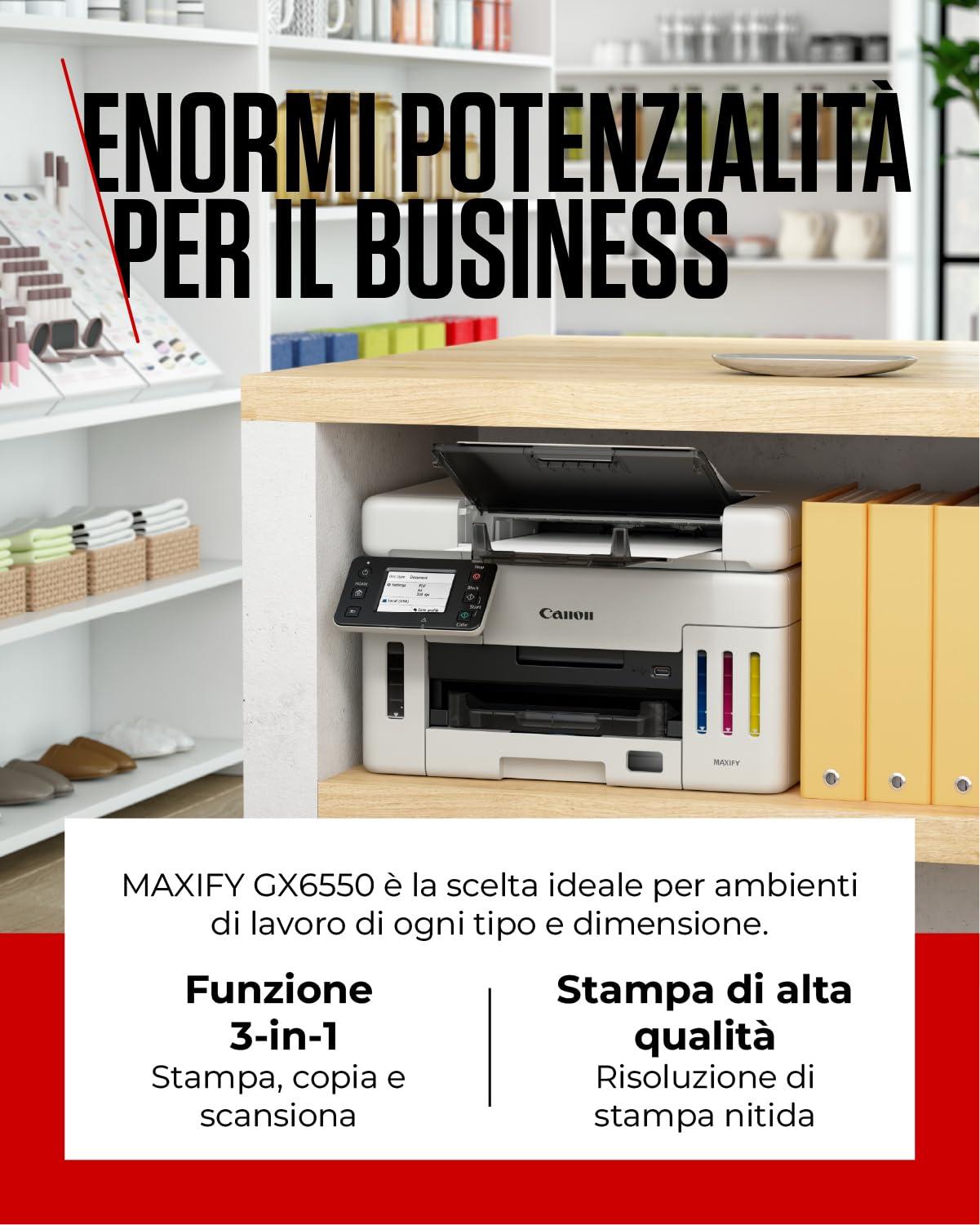 Canon Stampante WiFi per Casa e Ufficio MAXIFY GX6550 - Stampante Multifunzione MegaTank con Scanner e Fotocopiatrice per Casa | Connettività WiFi ed Ethernet