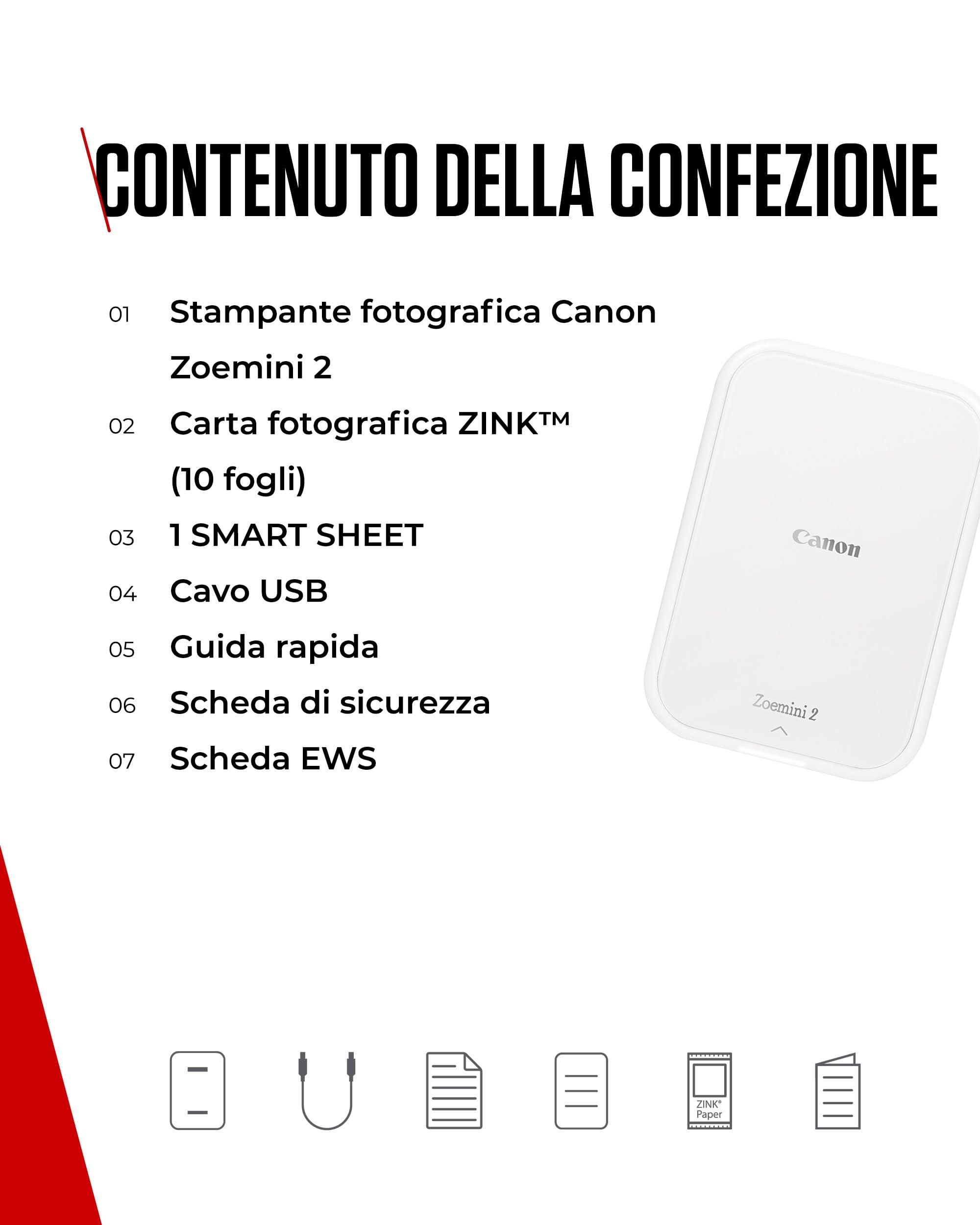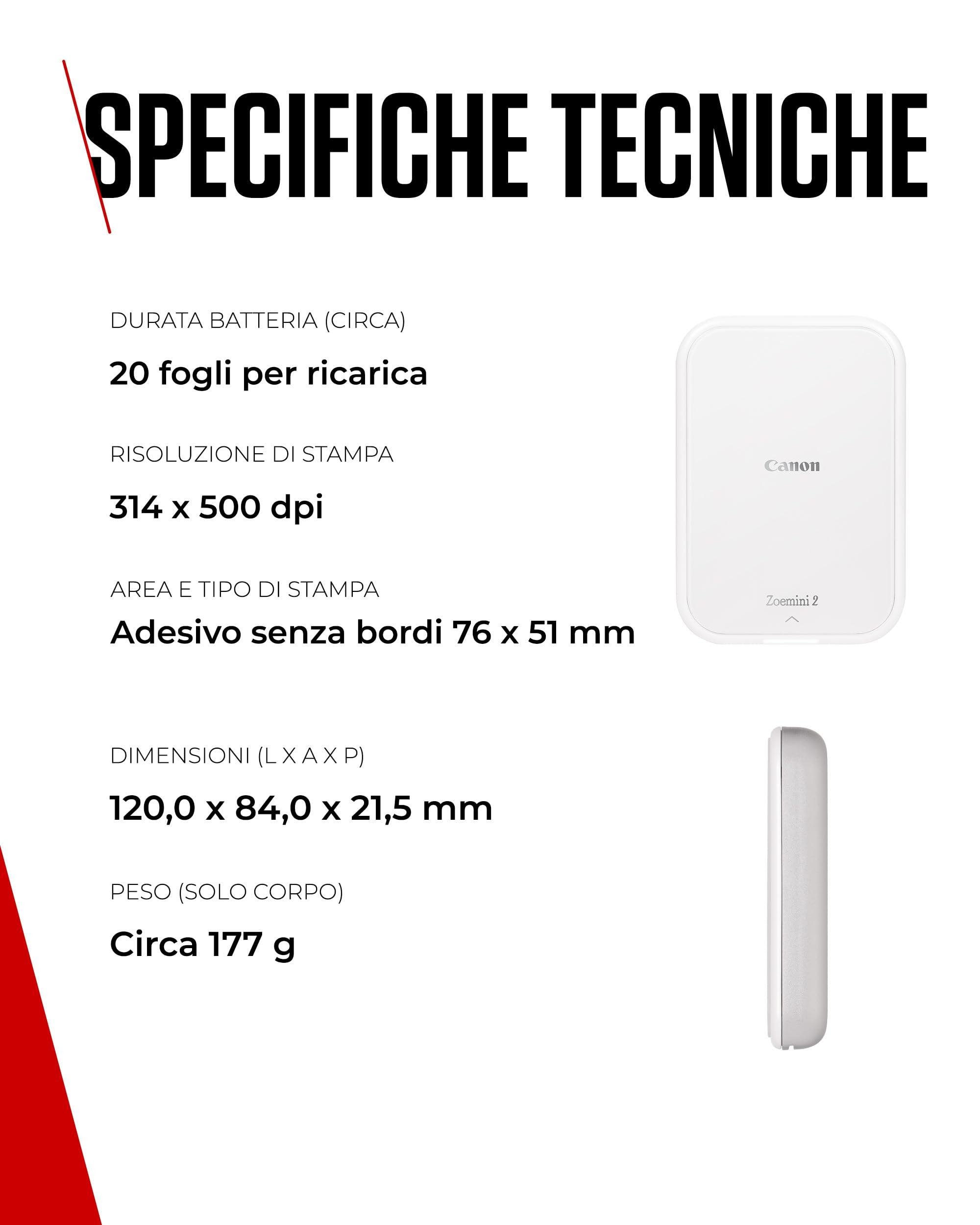 Canon Zoemini 2: Piccole Stampe, Grandi Risultati - Stampante Fotografica Portatile per Smartphone - Mini Stampante Fotografica Compatta e Wireless - Ricarica Rapida via USB C e Bluetooth - Bianco