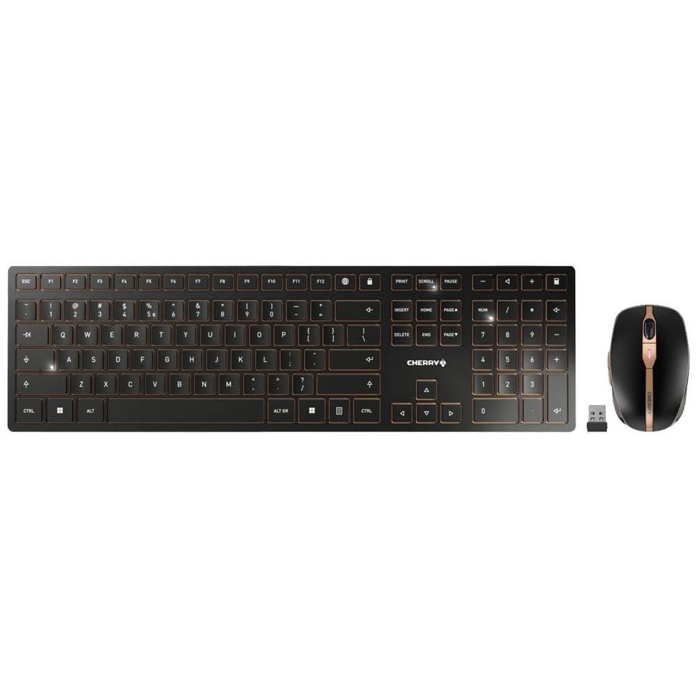 CHERRY DW 9100 SLIM, Set di Tastiera e Mouse Senza Fili, Layout per l'Unione Europea (QWERTY), Connessione Bluetooth e Wireless 2,4 GHz, Tasti Silenziosi, Ricaricabile, Nero-Bronzo