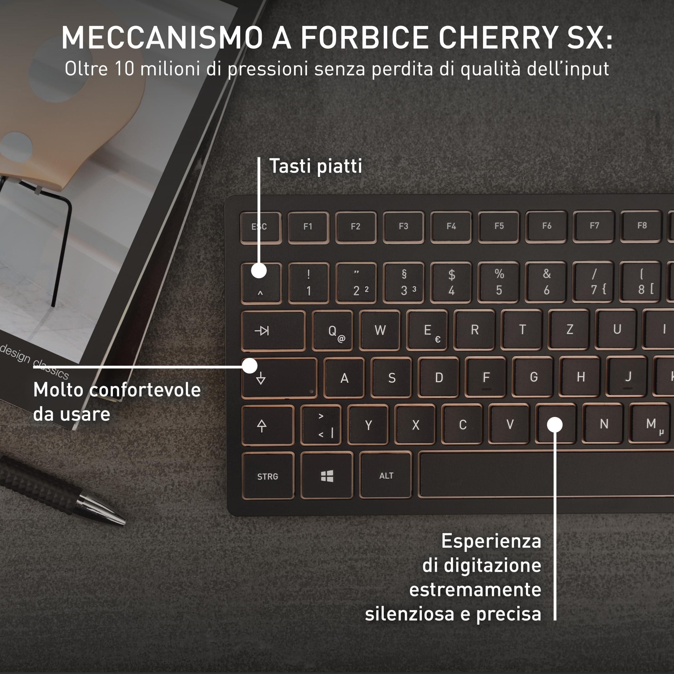 - Meccanismo a forbice CHERRY SX: offre una sensazione di digitazione piacevole e precisa e una battitura assolutamente silenziosa - perfetta per giornate lavorative produttive in ufficio e a casa