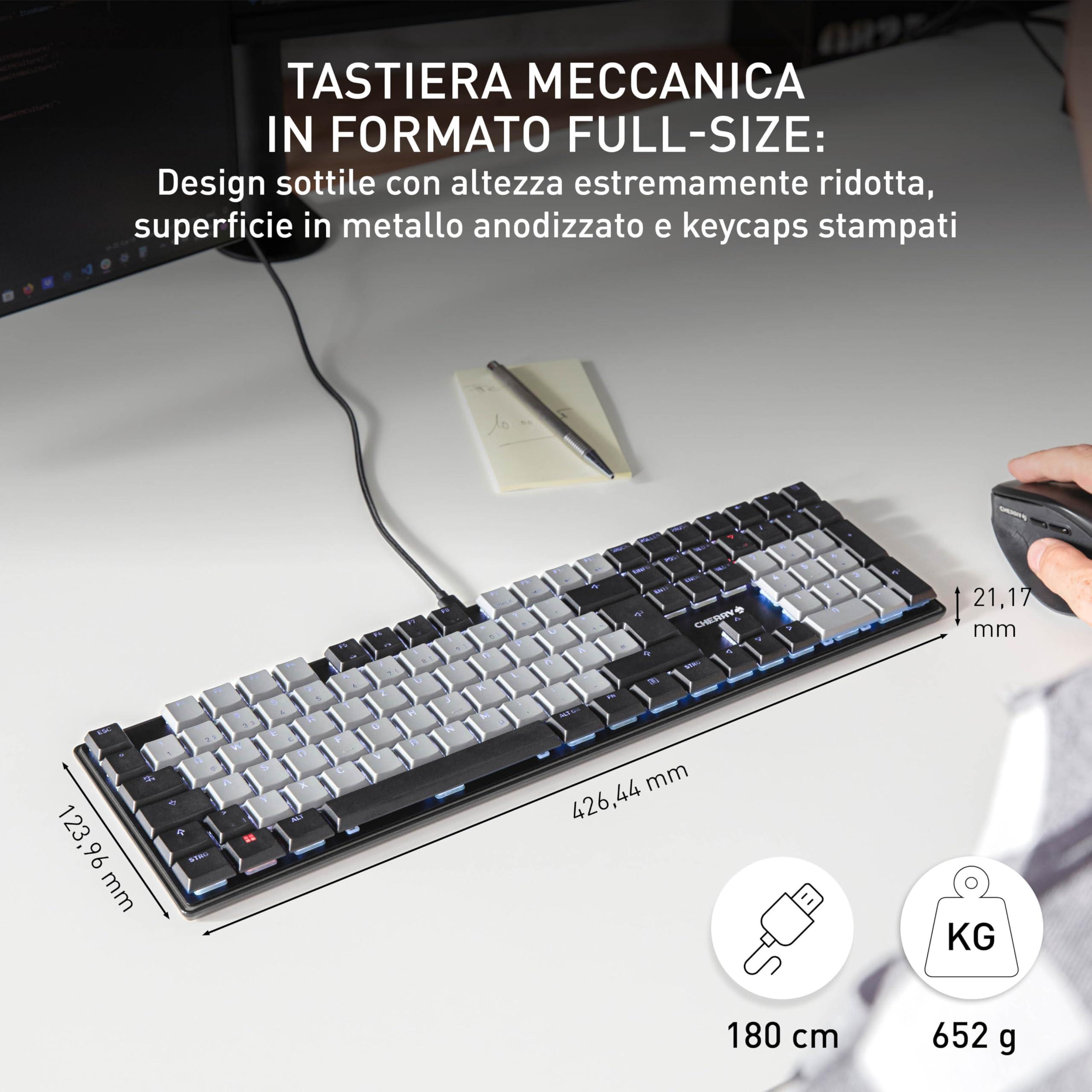 CHERRY KC 500 MX LP, Tastiera Meccanica A Basso Profilo, Layout Tedesco (QWERTZ), Cablata (USB-A), Illuminazione Bianca, Interruttori MX LP 2.0 IVORY, Nero