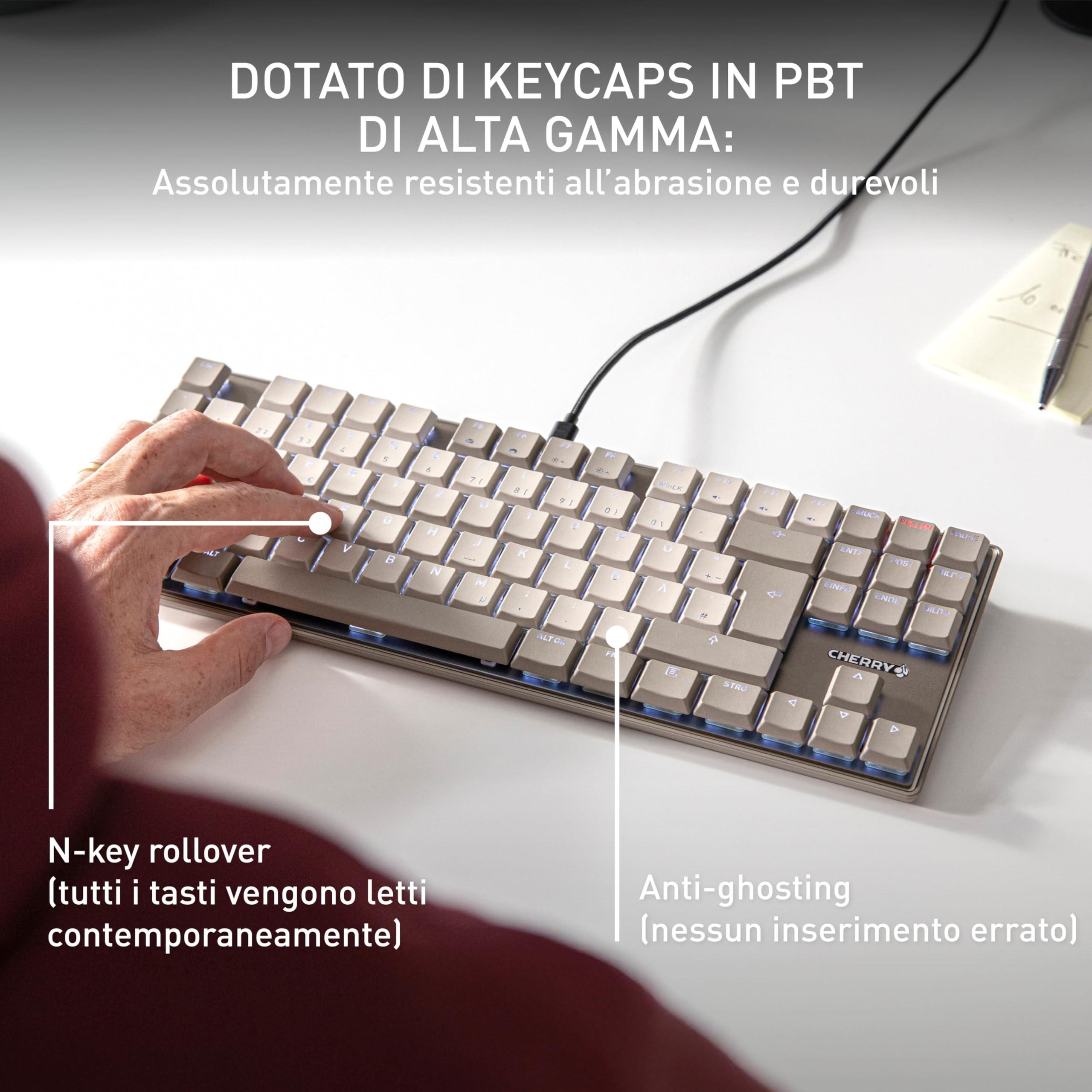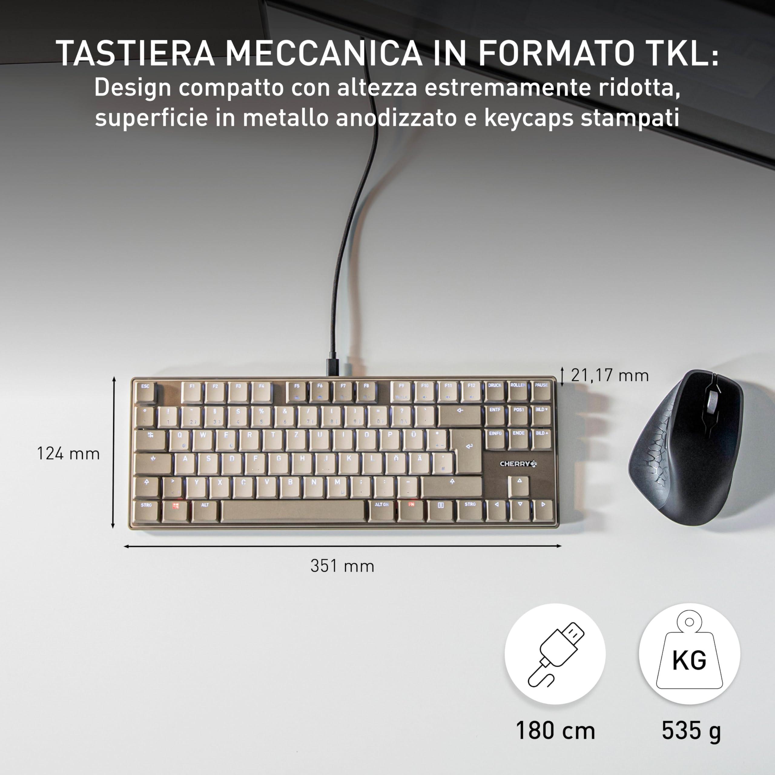 CHERRY KC 500 MX LP TKL, Tastiera Meccanica A Basso Profilo Senza Tastierino Numerico, Layout Tedesco (QWERTZ), USB-A, Interruttori MX LP 2.0 IVORY, Grigio